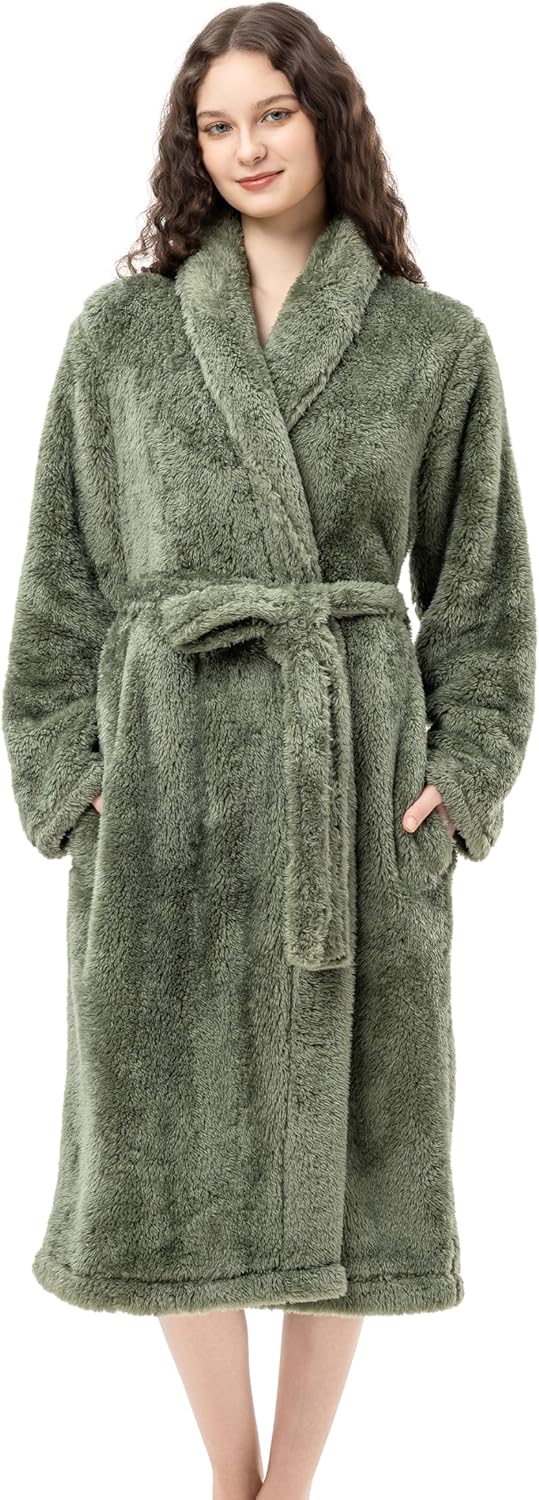 Berkshire Extra-Fluffy™ Womenu2018s Robe u2014 Luxurious Fluffy Plush Bathrobe,Soft Warm Fleece Loungewear with Pockets and Belt