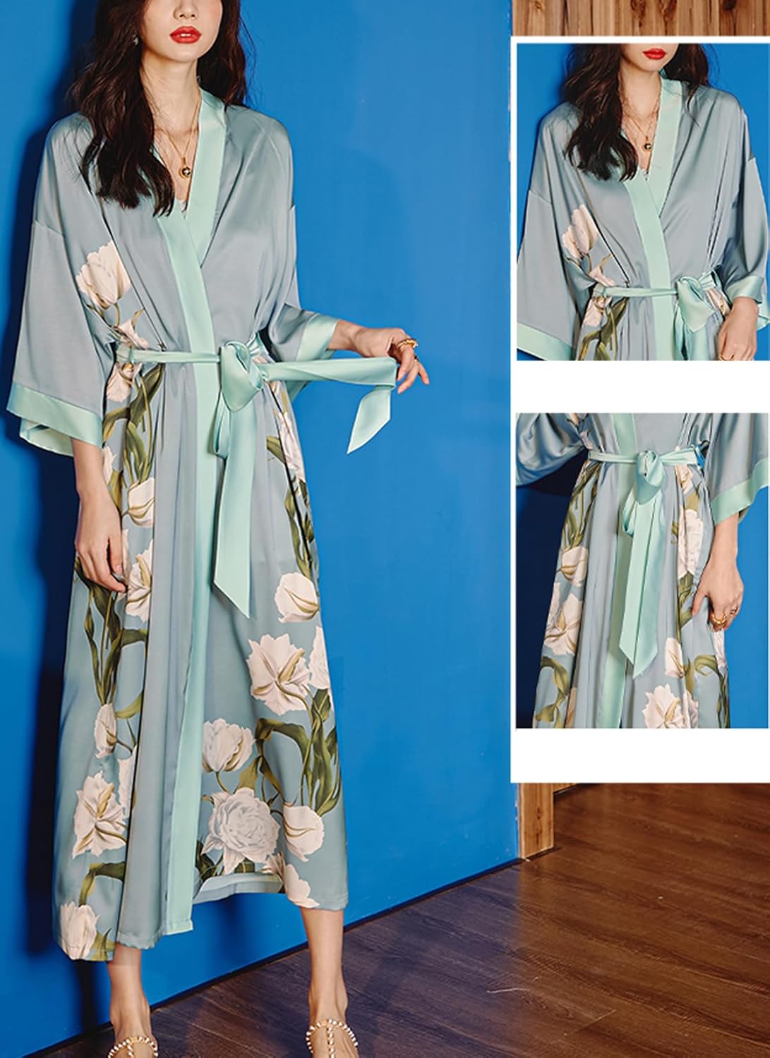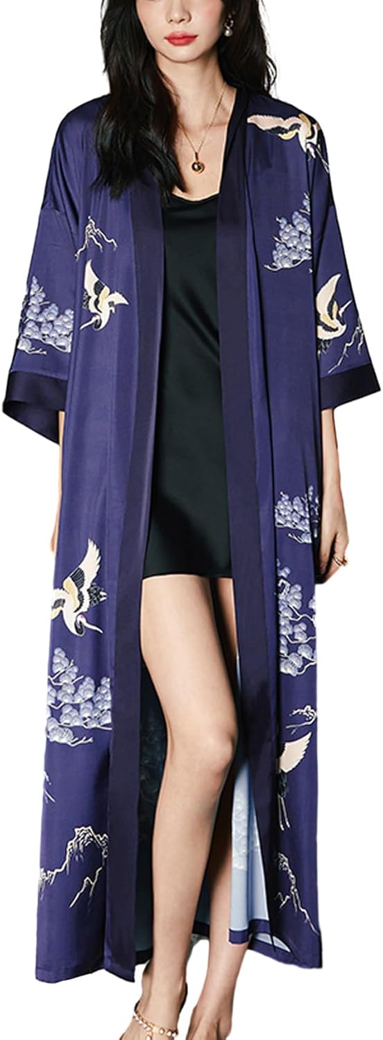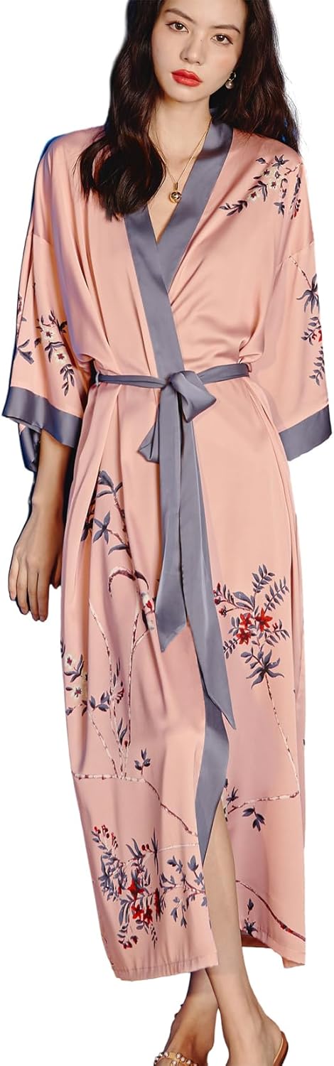 Daiwor Kout Silk Satin Robe for Women Long Japanese Kimono Robe Lightweight S…