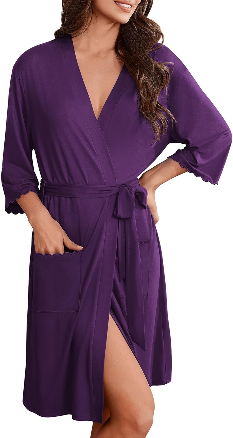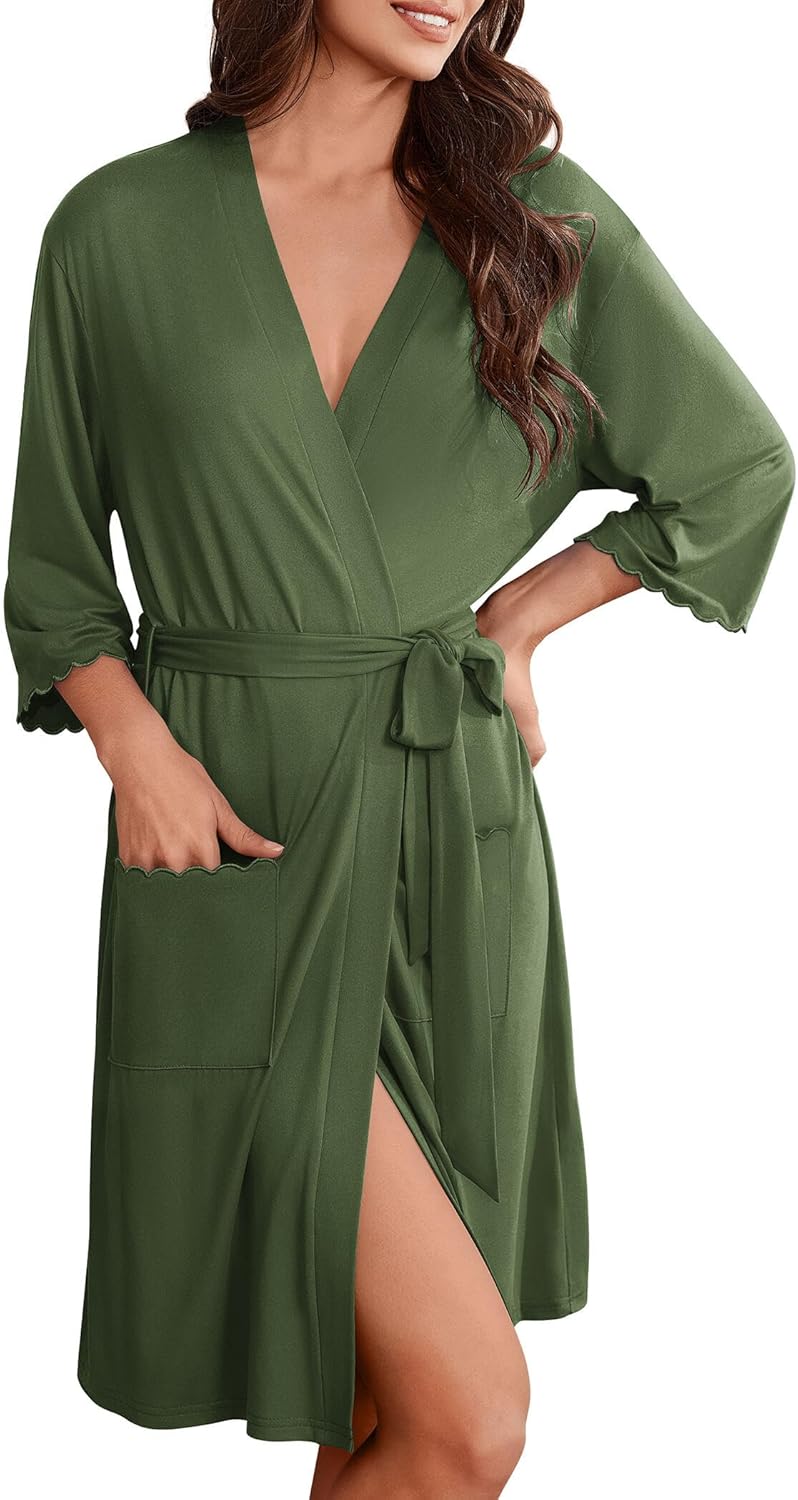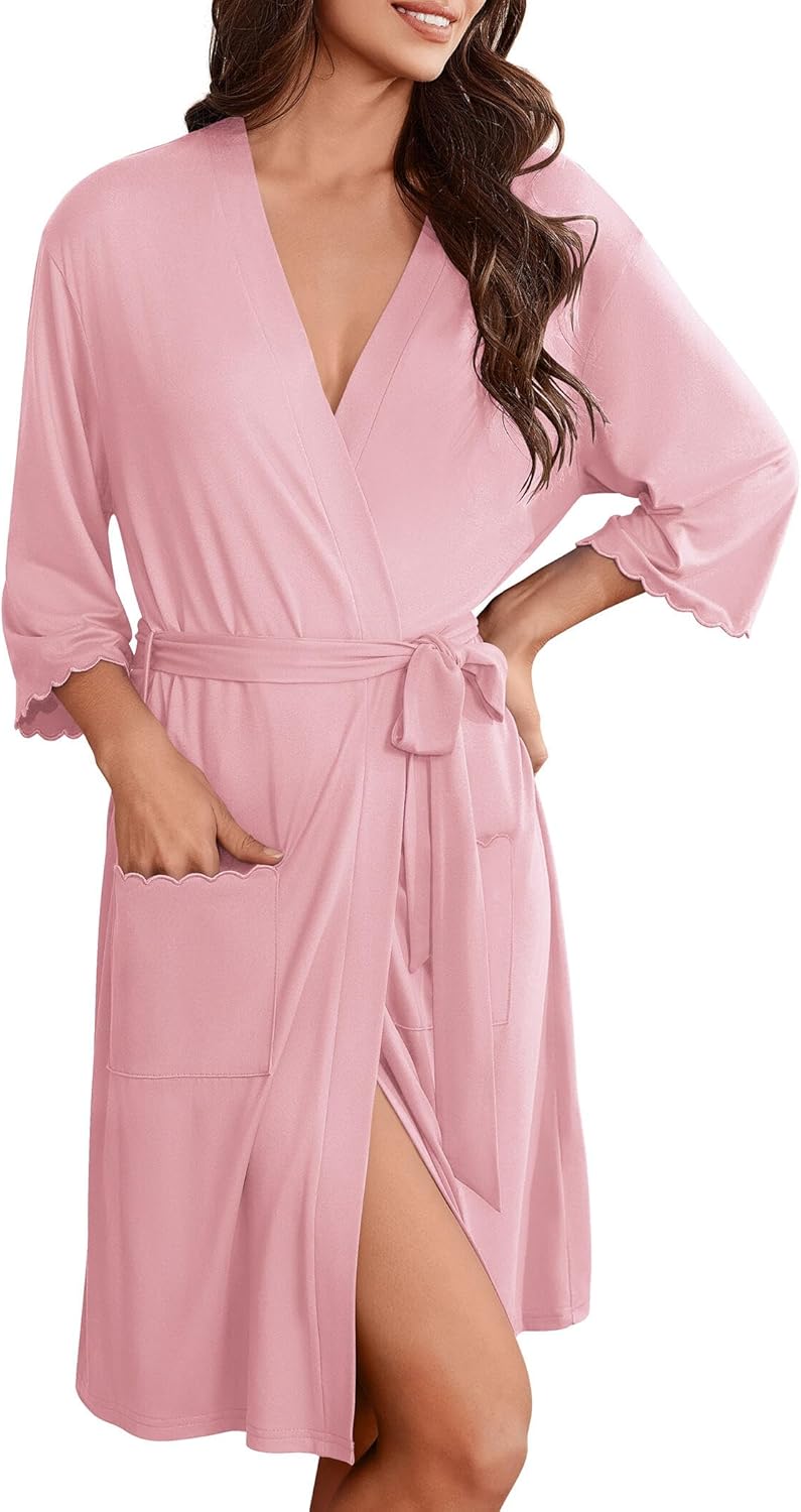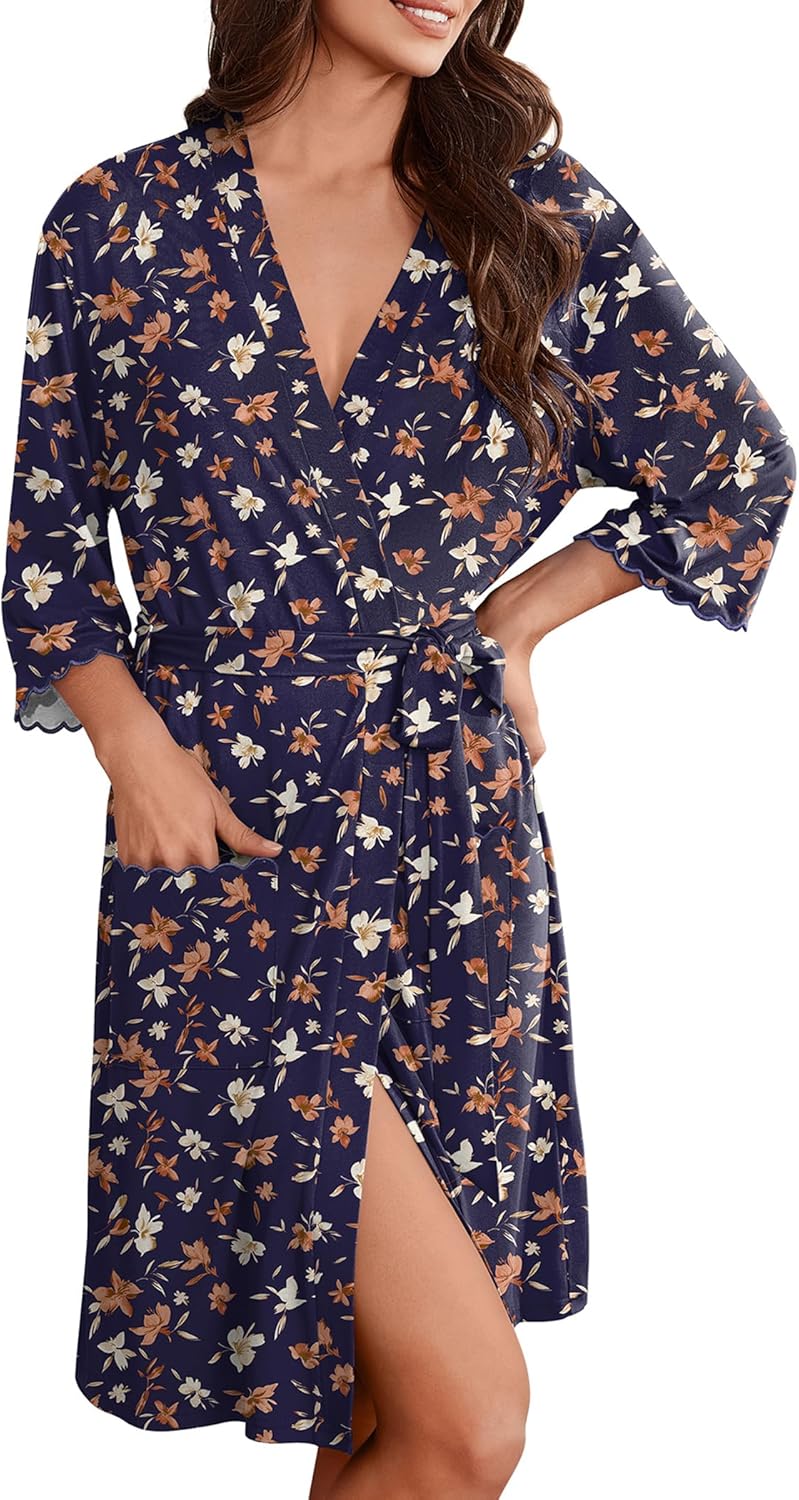 Ekouaer Robes for Women Kimono Bathrobe 3/4 Sleeve Sleepwear with Pockets
