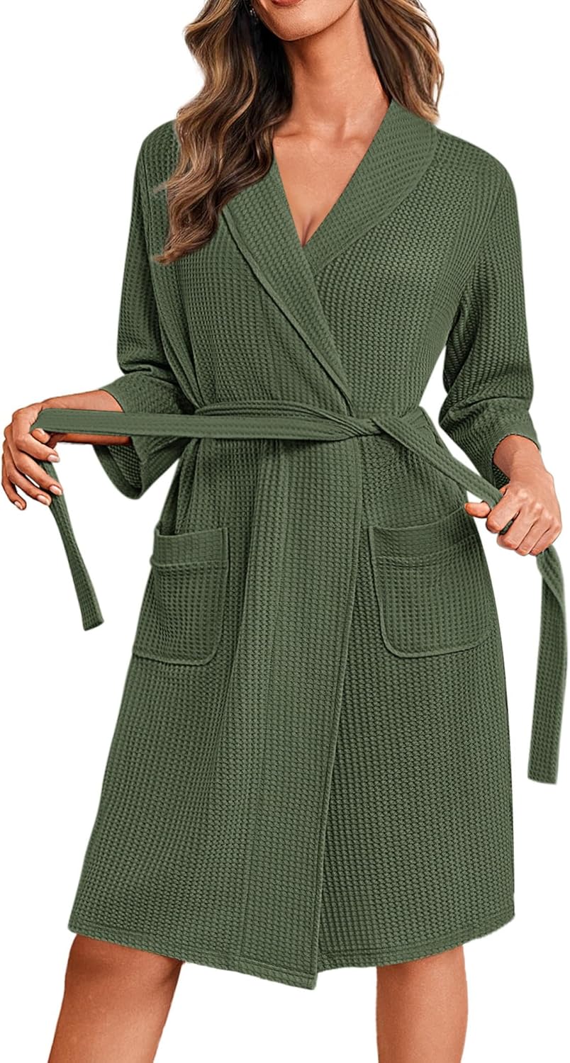 Ekouaer Robes for Women Waffle Knit Bathrobe Lightweight Kimono Robe Knee Length Loungewear with Pockets