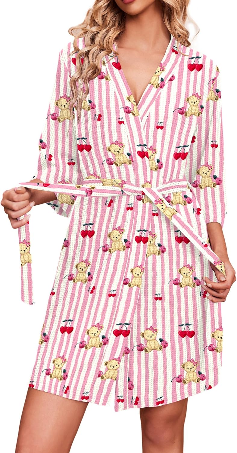 Ekouaer Robes for Women Waffle Knit Bathrobe Soft Lightweight Knee Length Loungewear S-XXL