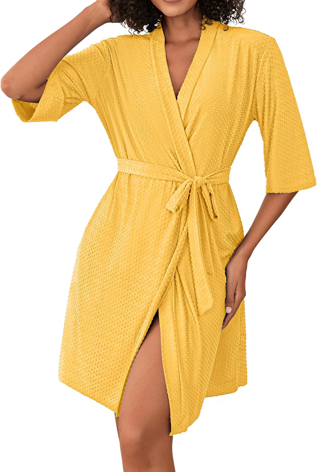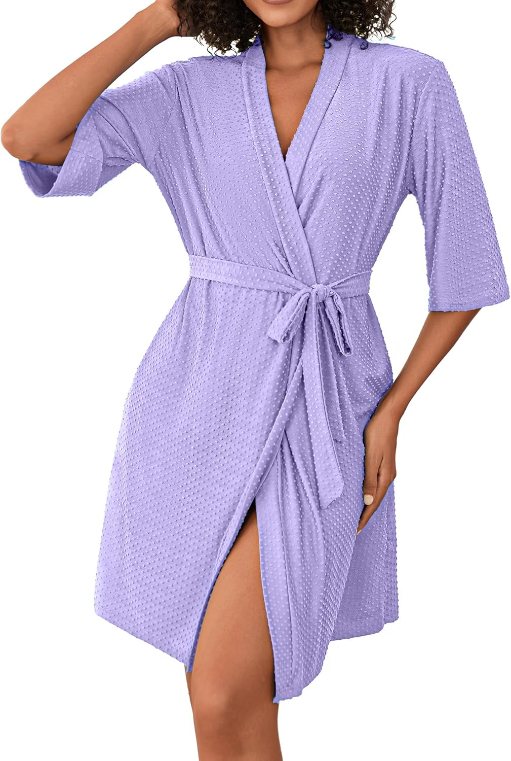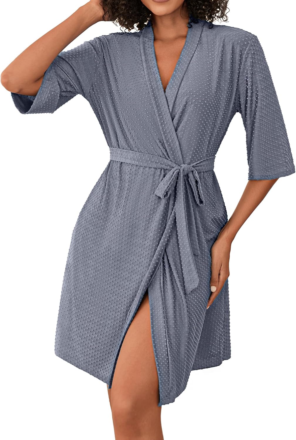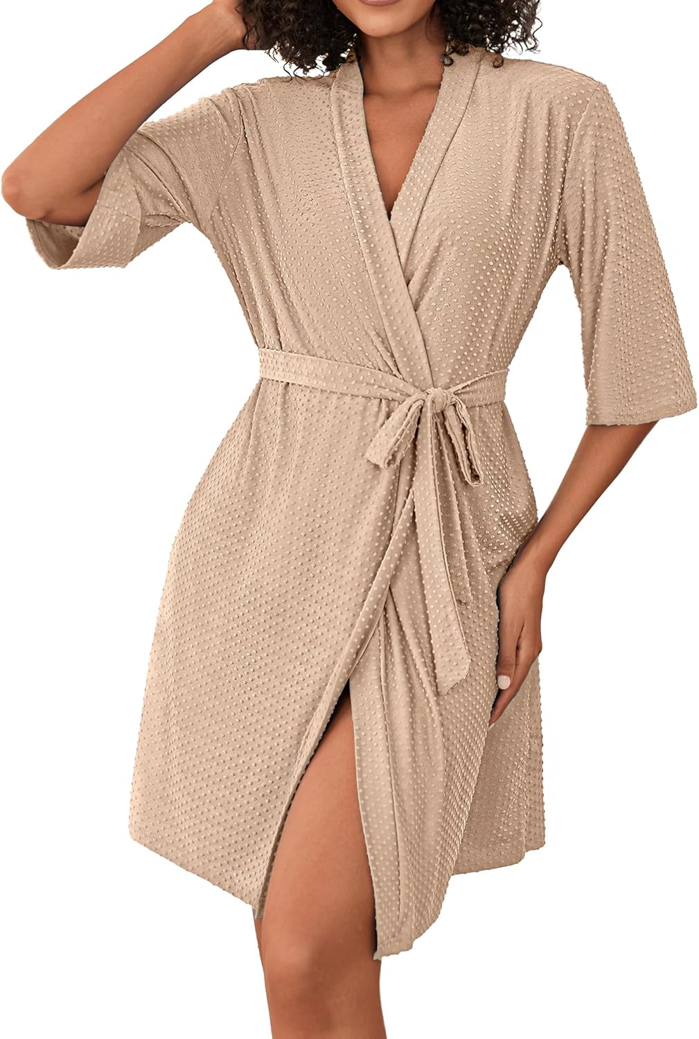 Ekouaer Short Robes for Women Lightweight Bathrobe Kimono Robes Knee Length 3/4 Sleeve Swiss Polka Dot Soft Robe with Pockets
