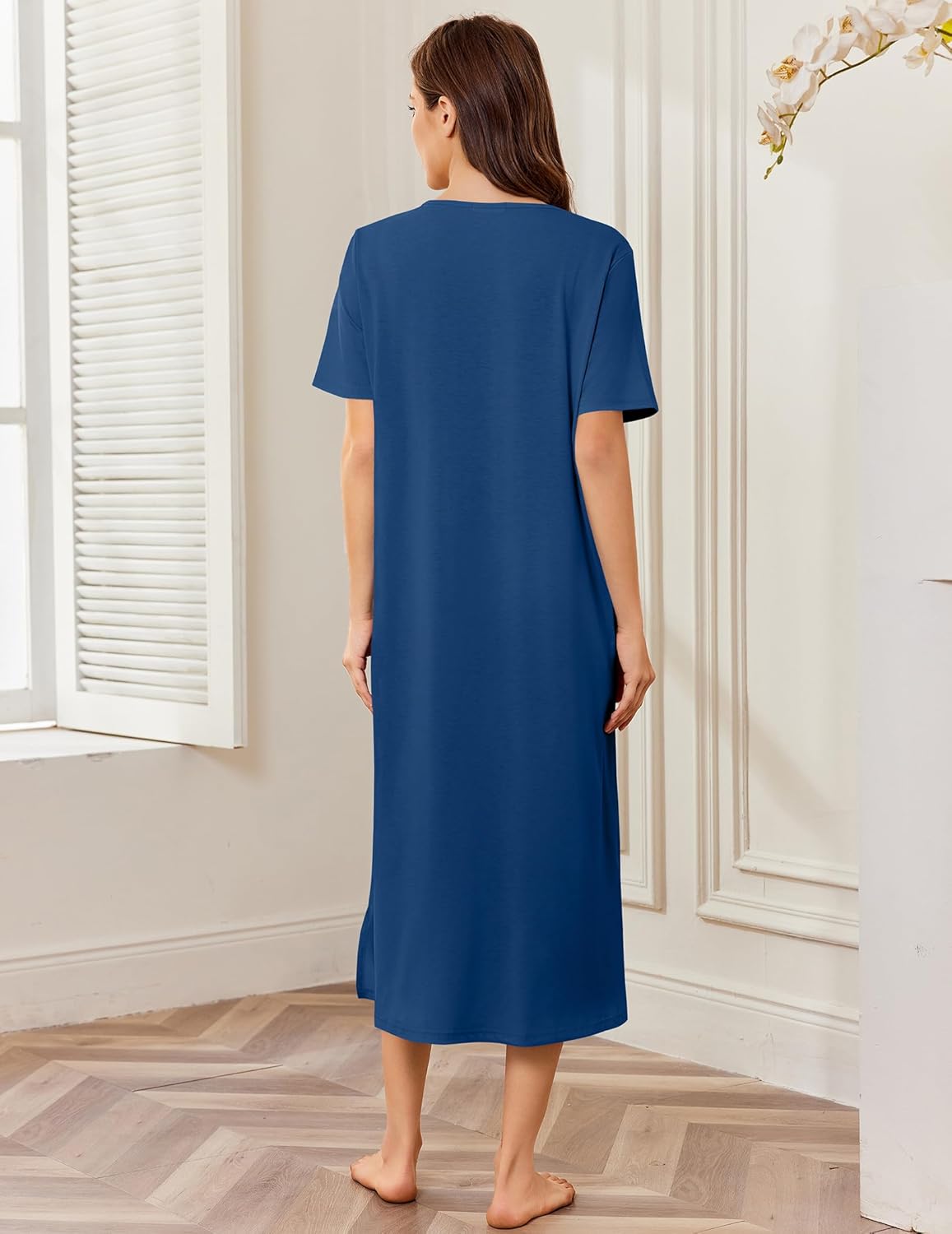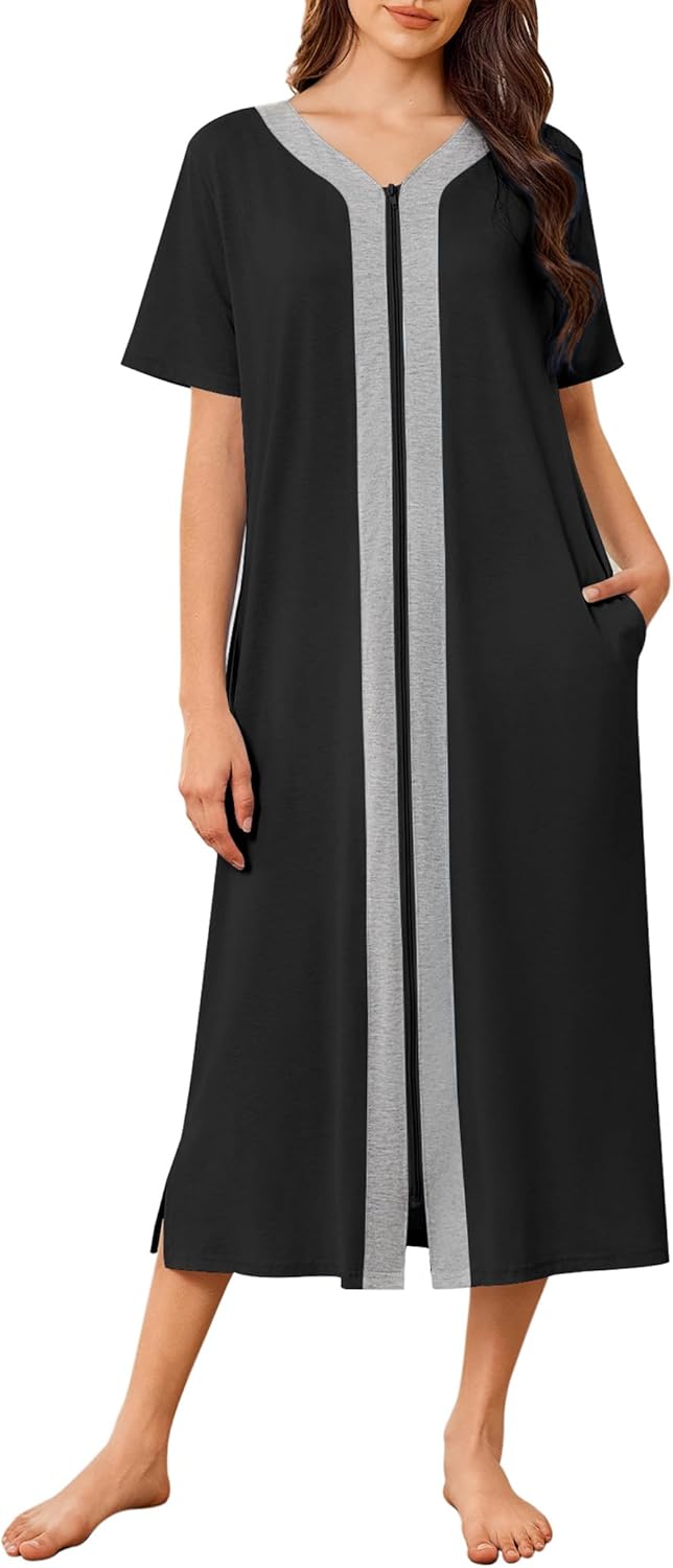 Ekouaer Women Zipper Robe Lightweight House Coat Zipper Front Long Nightgown Soft Loungewear with Pockets S-3XL