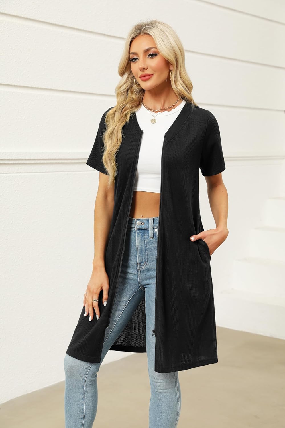 Nice to wear as a cardigan, pairing with crop top and jeans.