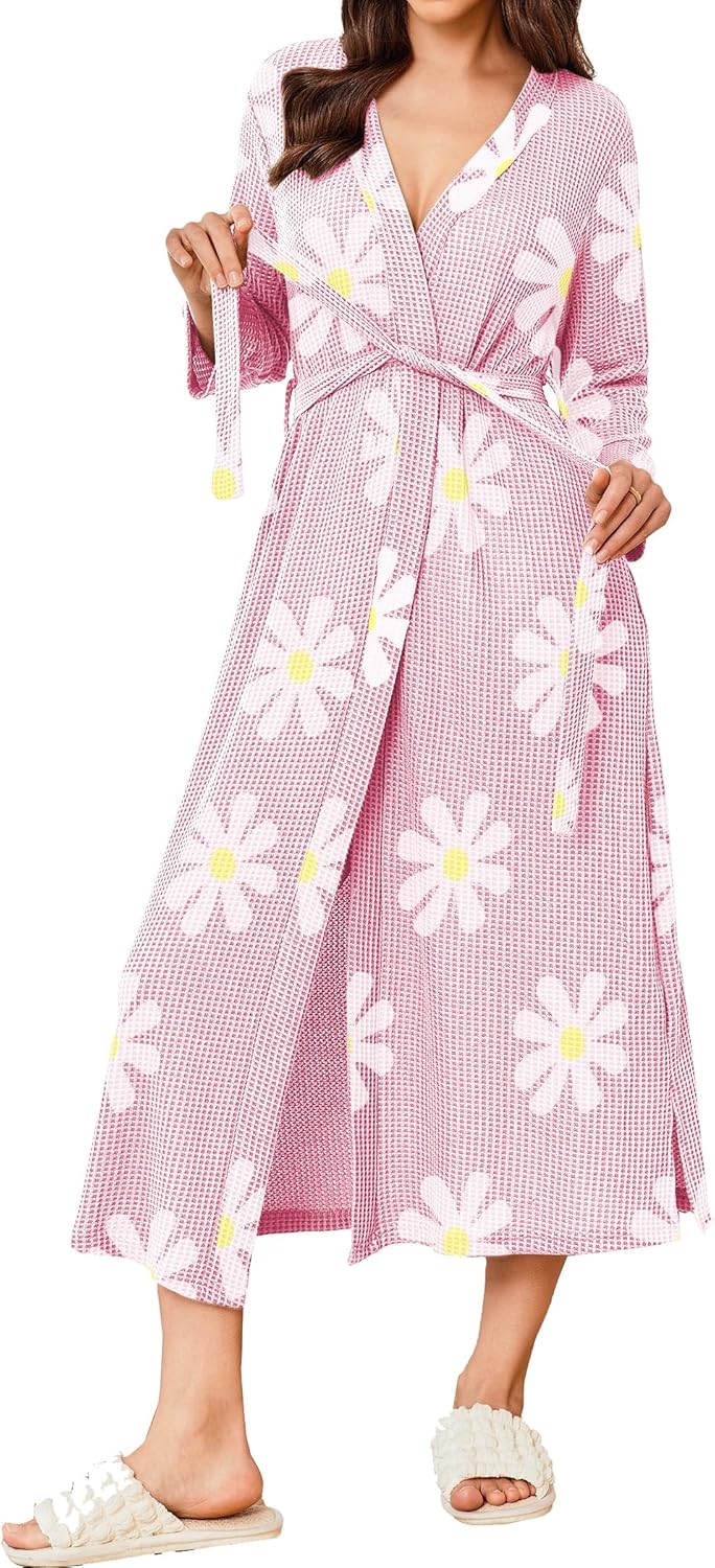Ekouaer Women’s Robe Long Waffle Knit Bathrobe Lightweight Soft Kimono Robes Loungewear S-XXL
