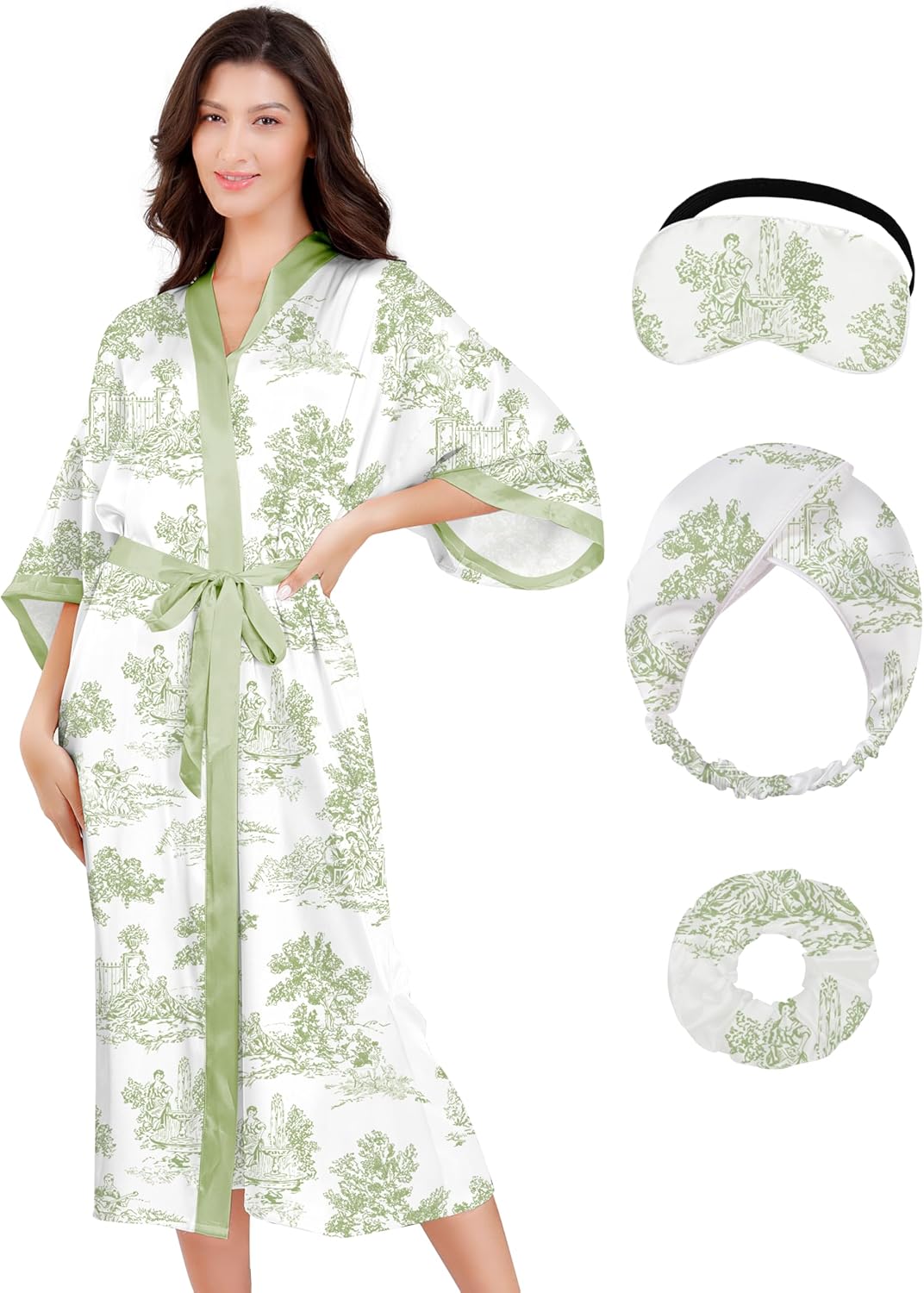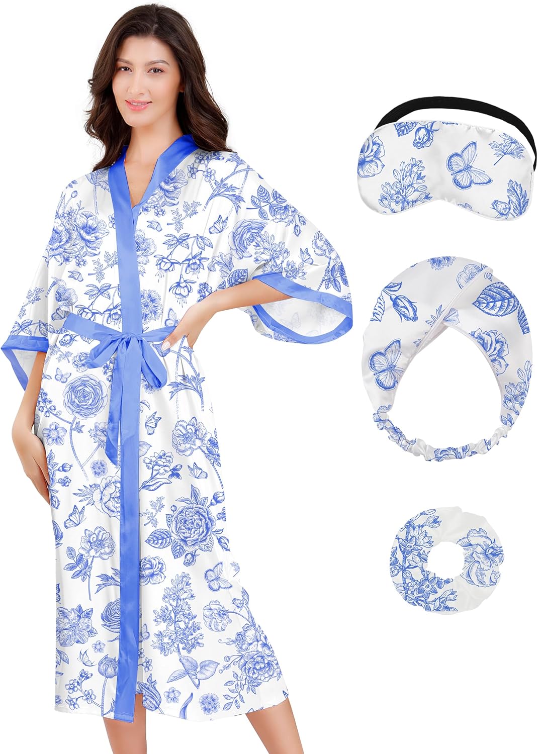 - Glamorous All-in-One Bridal Gift Set: Elevate your self-care with this long satin robe for women, complete with a sleep mask, headband, and scrunchie—perfect for spa days, gifting moments, or glowing as the bride robe for wedding day. Ideal for bridal party robes, Valentine’s Day, or honeymoons