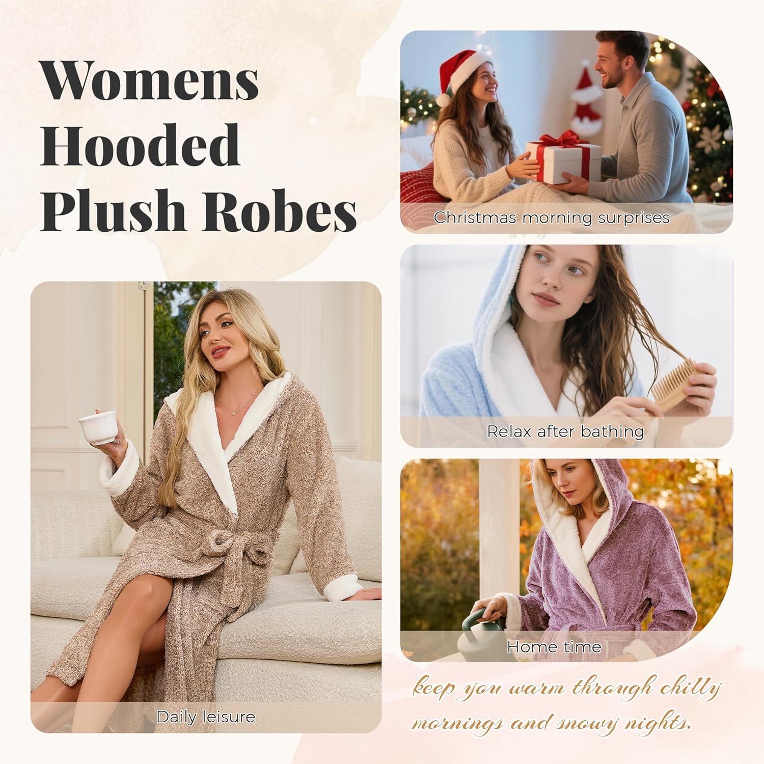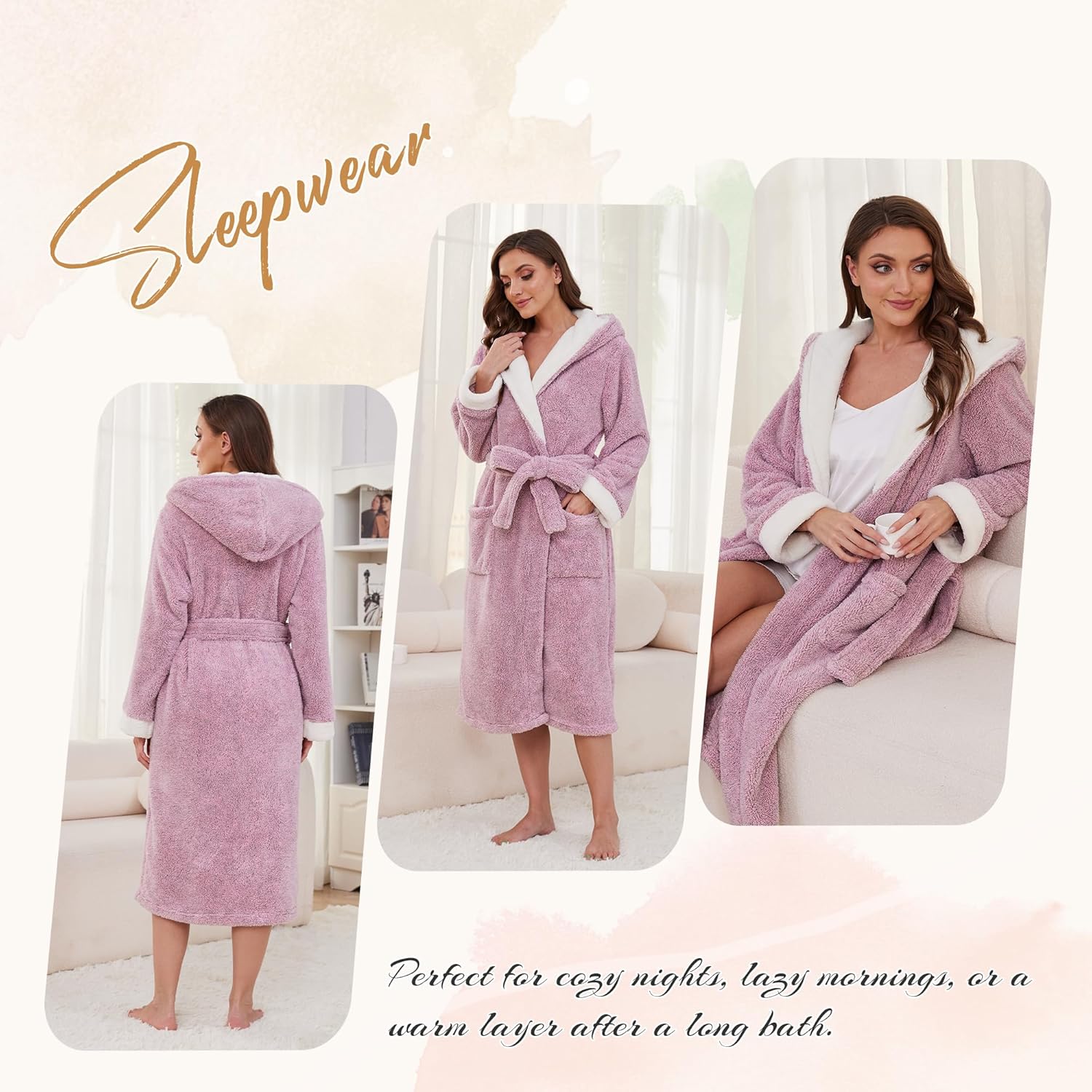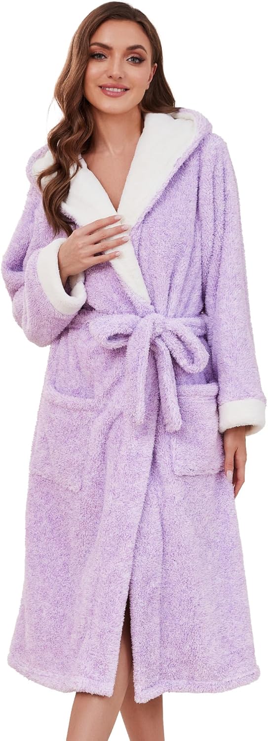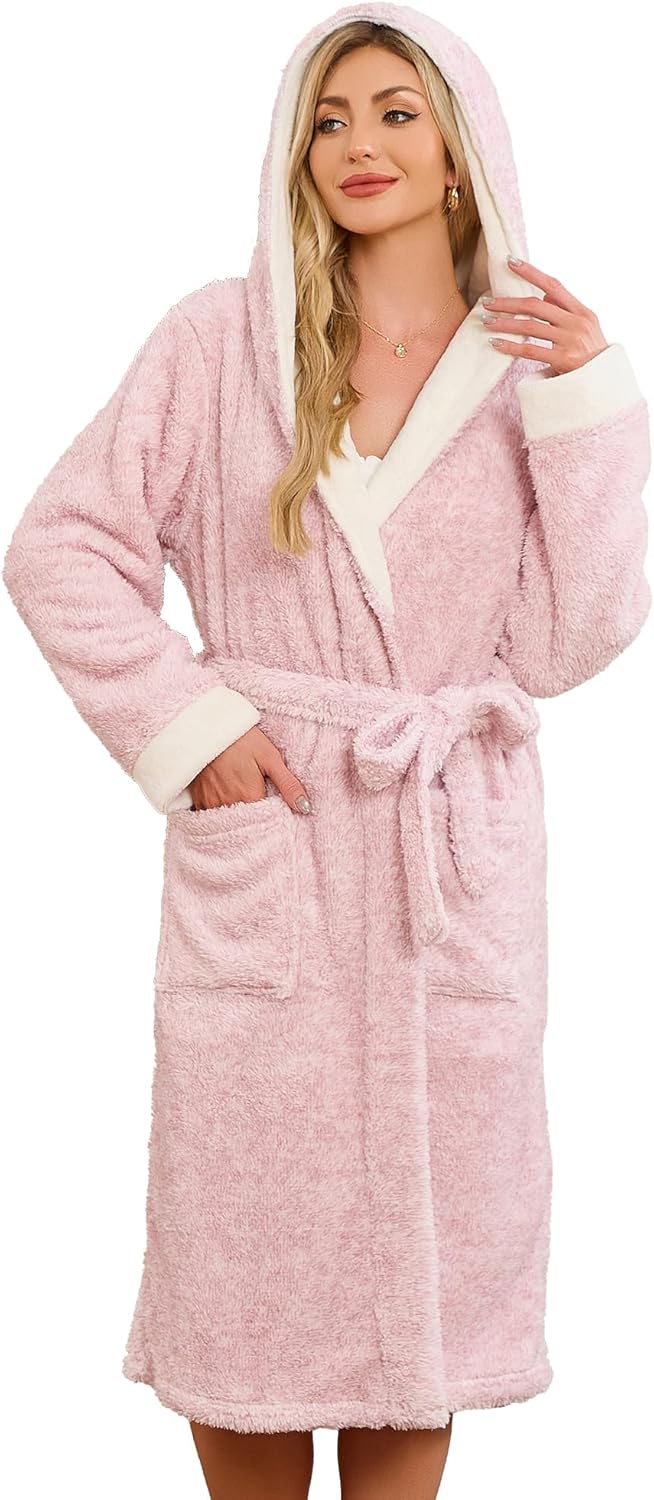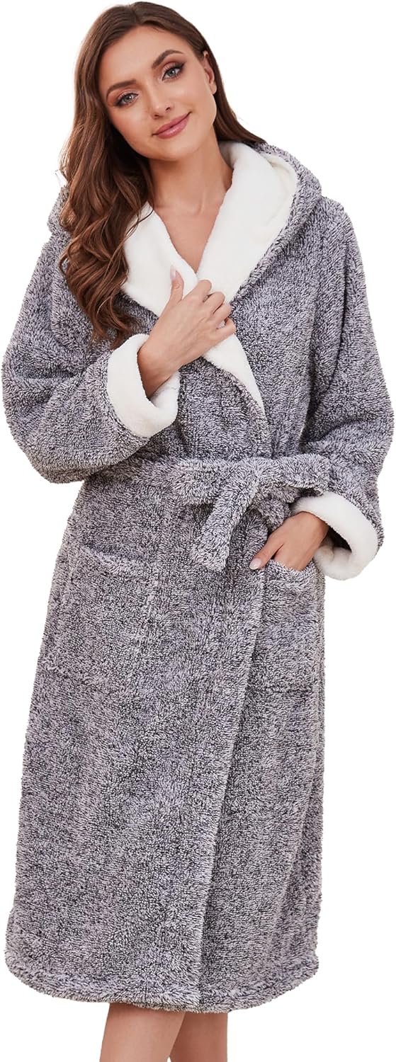 HEARTNICE Womens Hooded Plush Robes Soft Warm Long Bathrobe for Women Fluffy Winter Loungewear