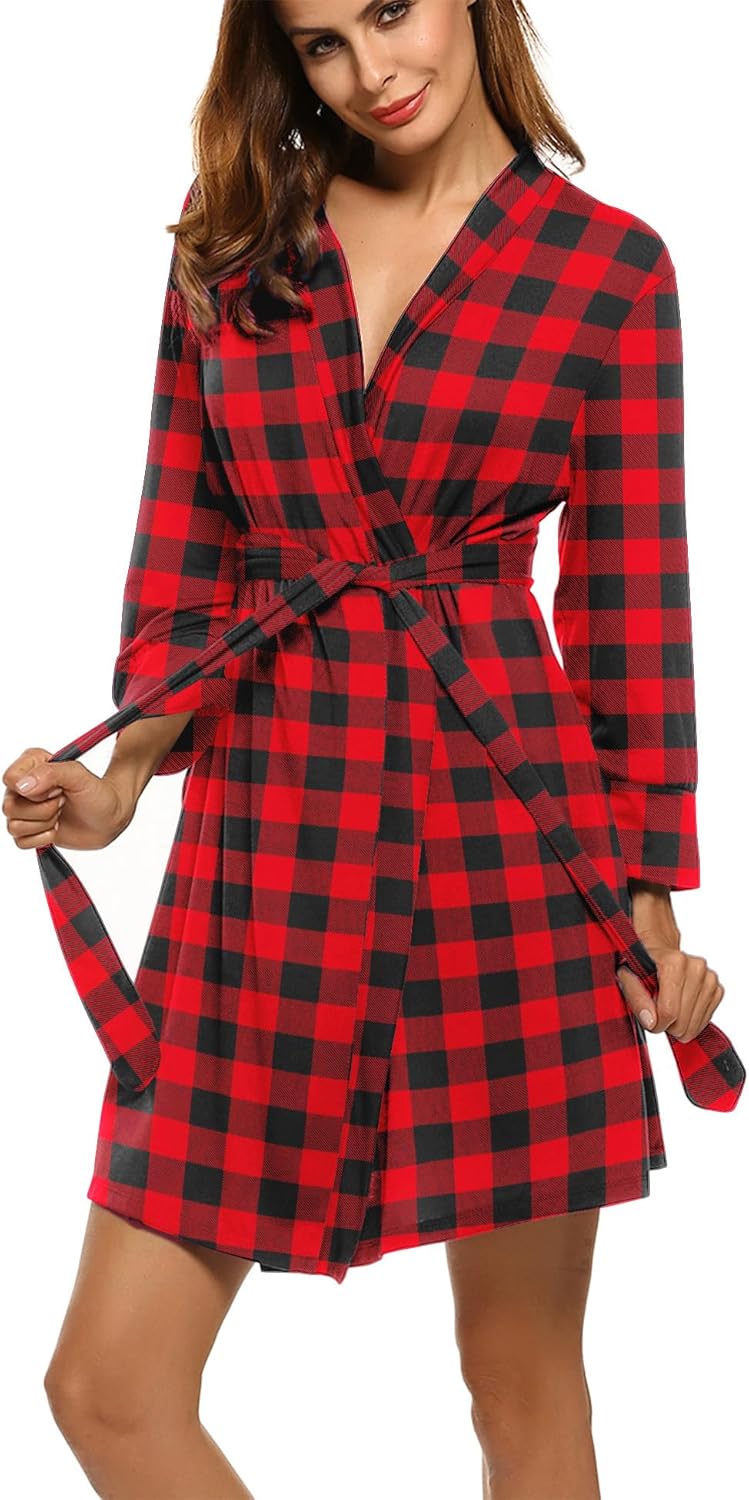 Womens Robe Lightweight Summer Robes Knee Length Knit Bathrobe Sleepwear