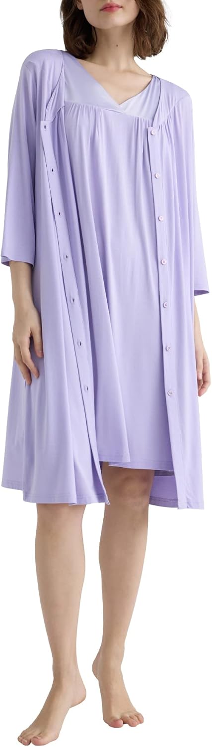 - 2 piece nightgown and robe set made with 95% viscose and 5% spandex fabric feels relaxed and cozy for home living.