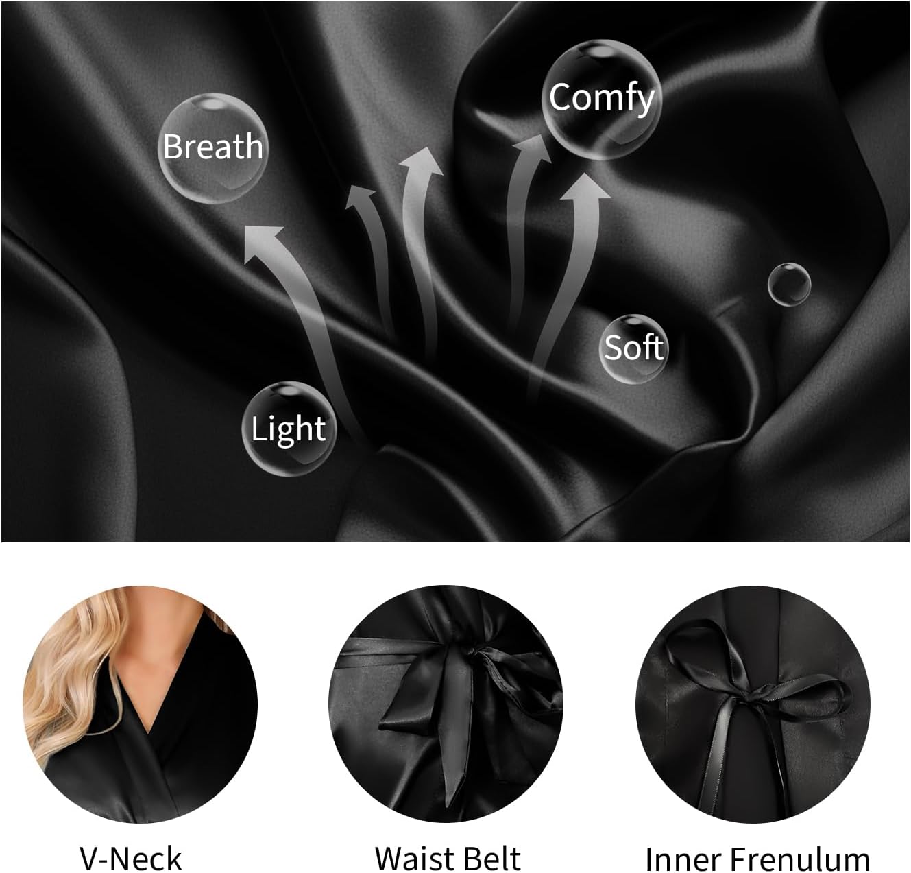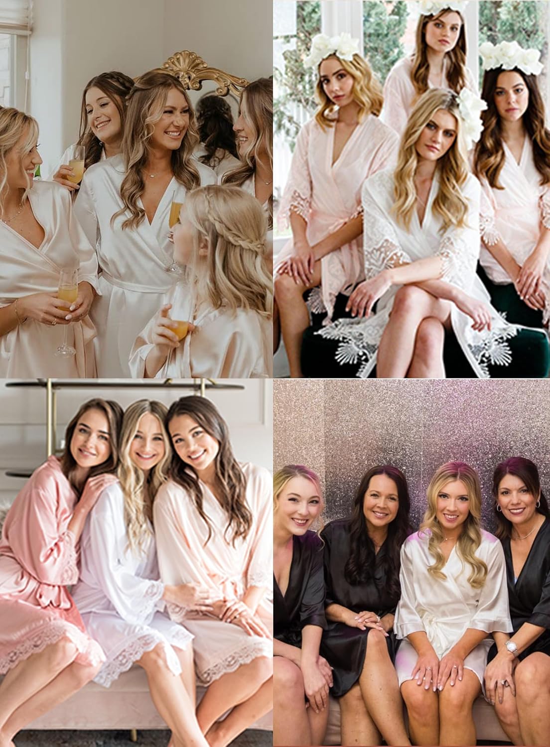 Women's Sexy 3/4 Sleeve Short Bathrobes Bride Bridesmaids Satin Robe Nightgown