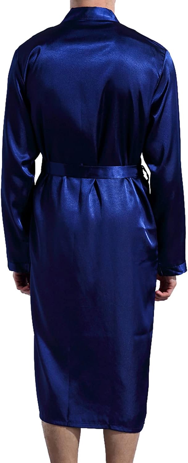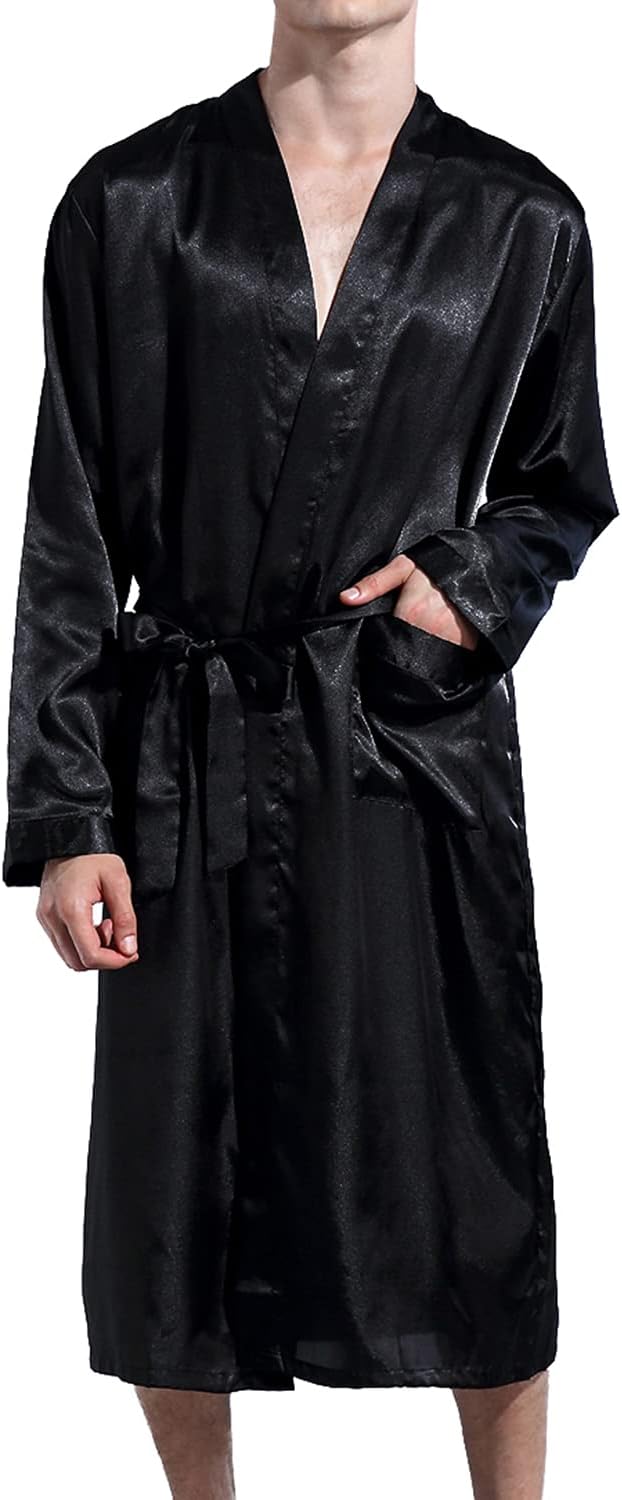 Lu’s Chic Men’ Satin Kimono Robe Silk Classic Long Bathrobe Pockets Lighweight Loungewear