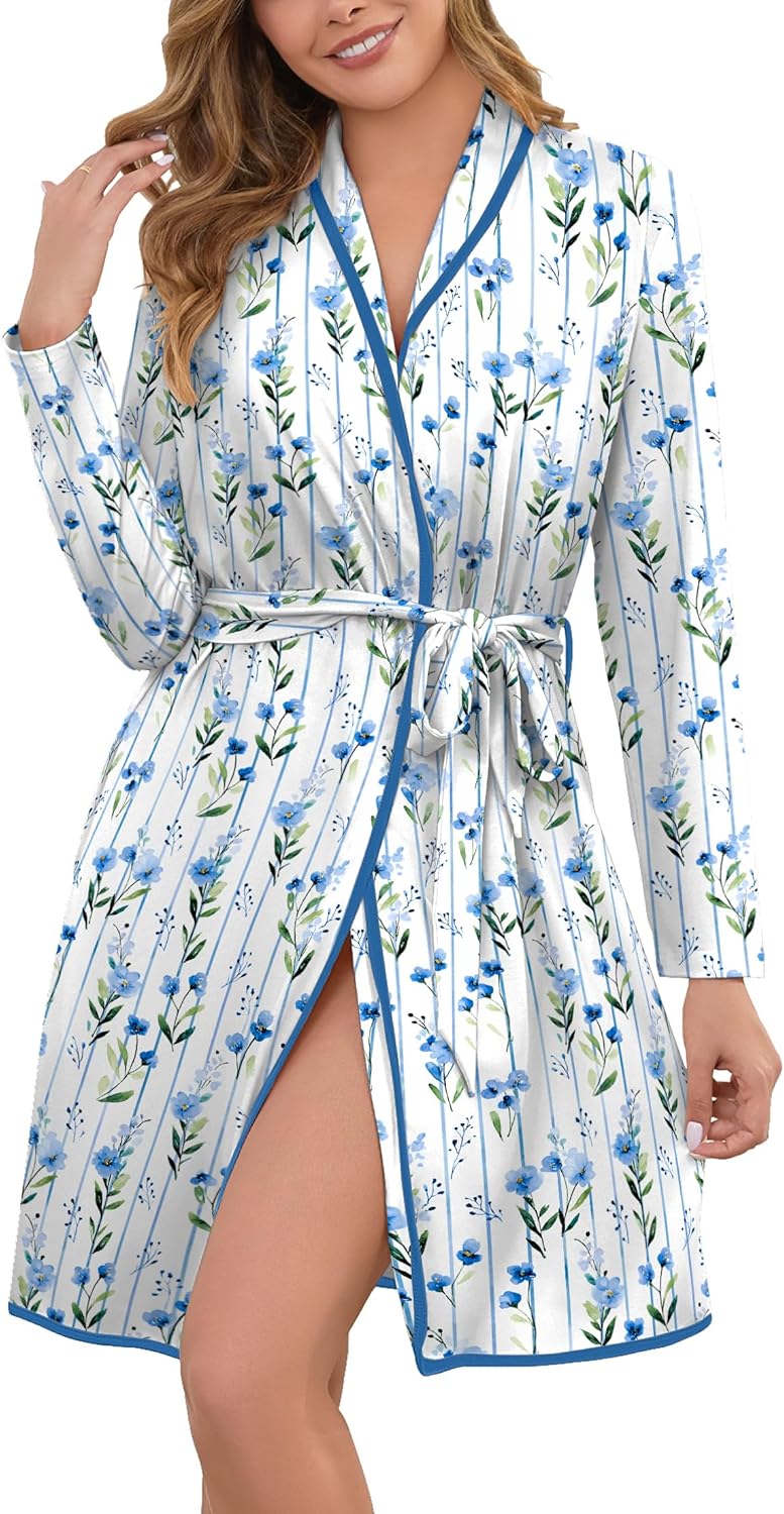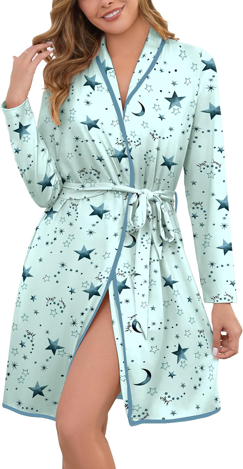 Namatime Robes for Women Print Long Sleeve Kimono Bath Robe Lightweight House Coat Bathrobe Loungewear with Pockets