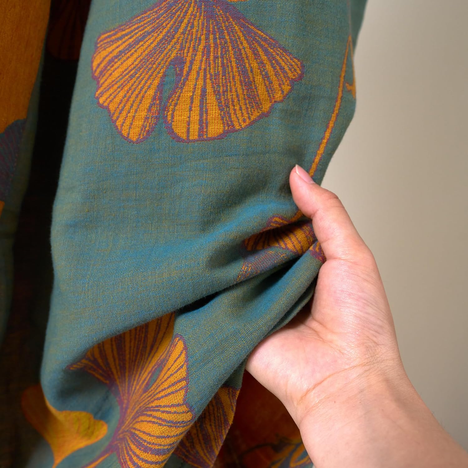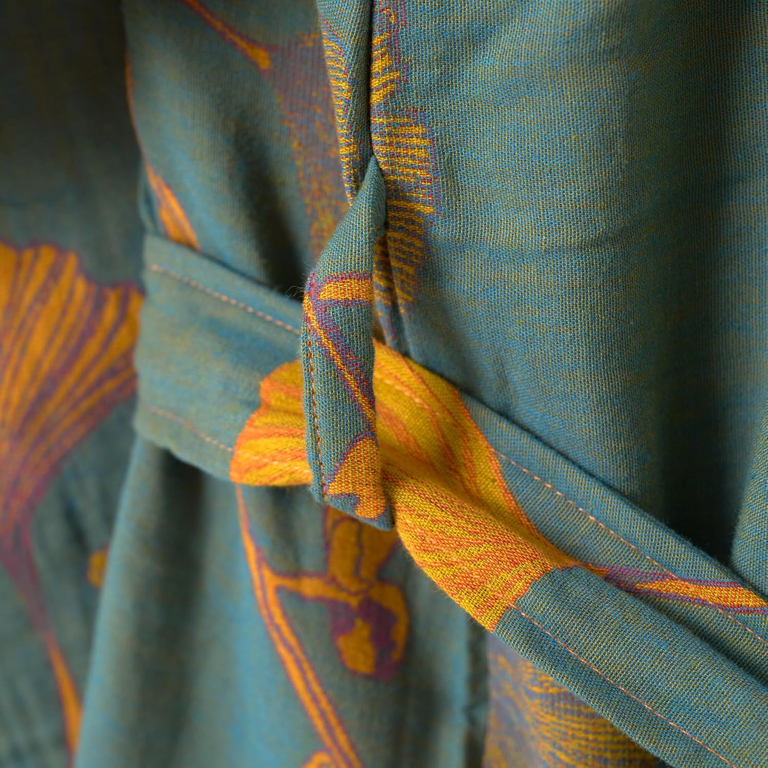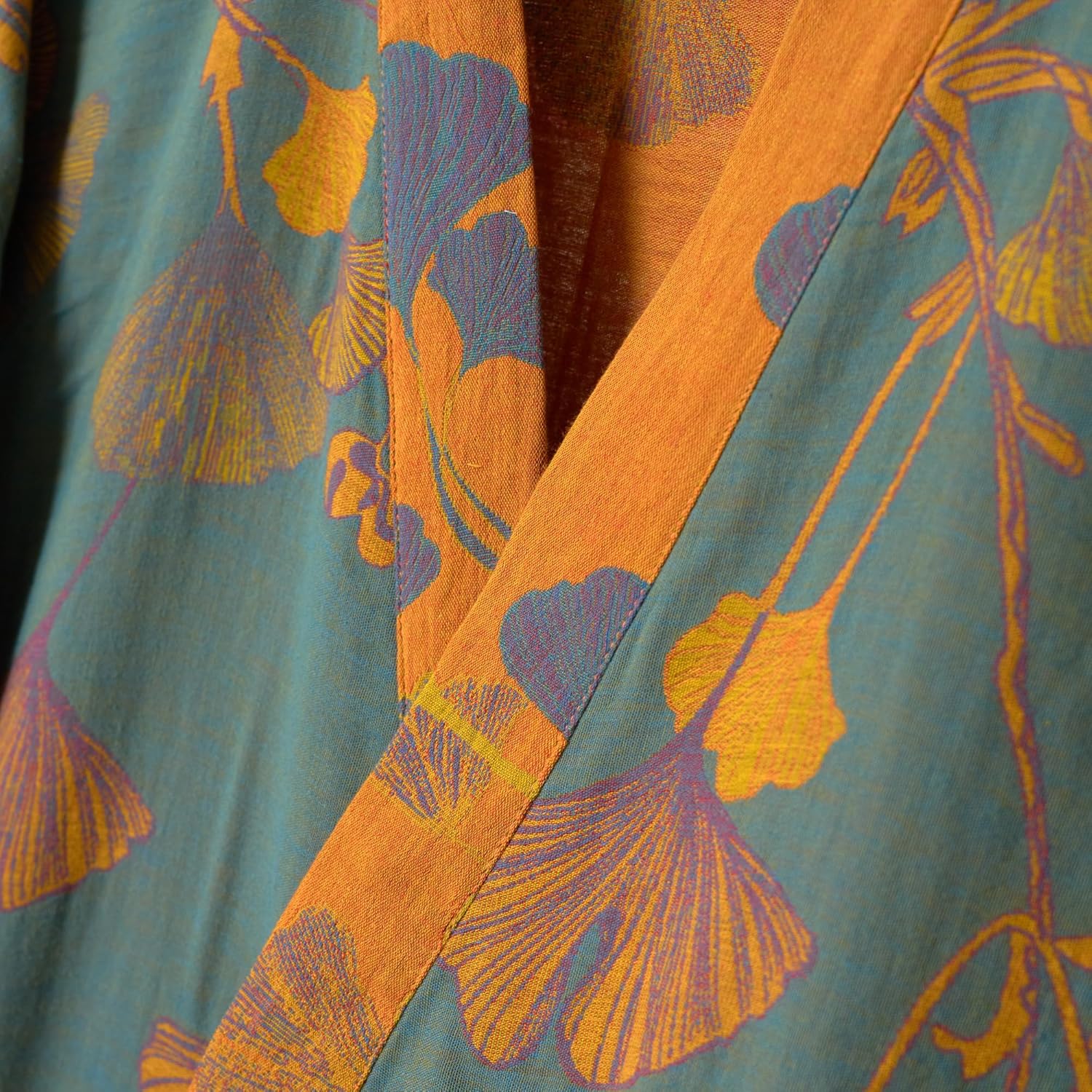 Purefair 100% Cotton Gauze Ginkgo Leaf Kimono Robe, Long Knit Loose Bathrobe Nightgown Ladies Loungewear Sleepwear for Women