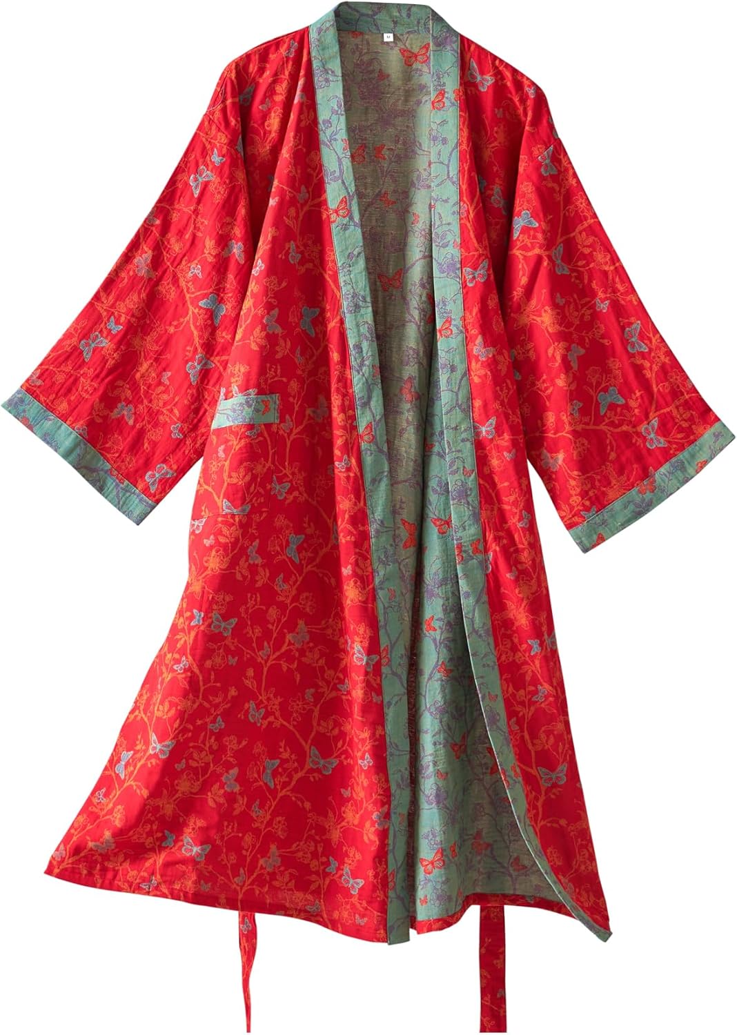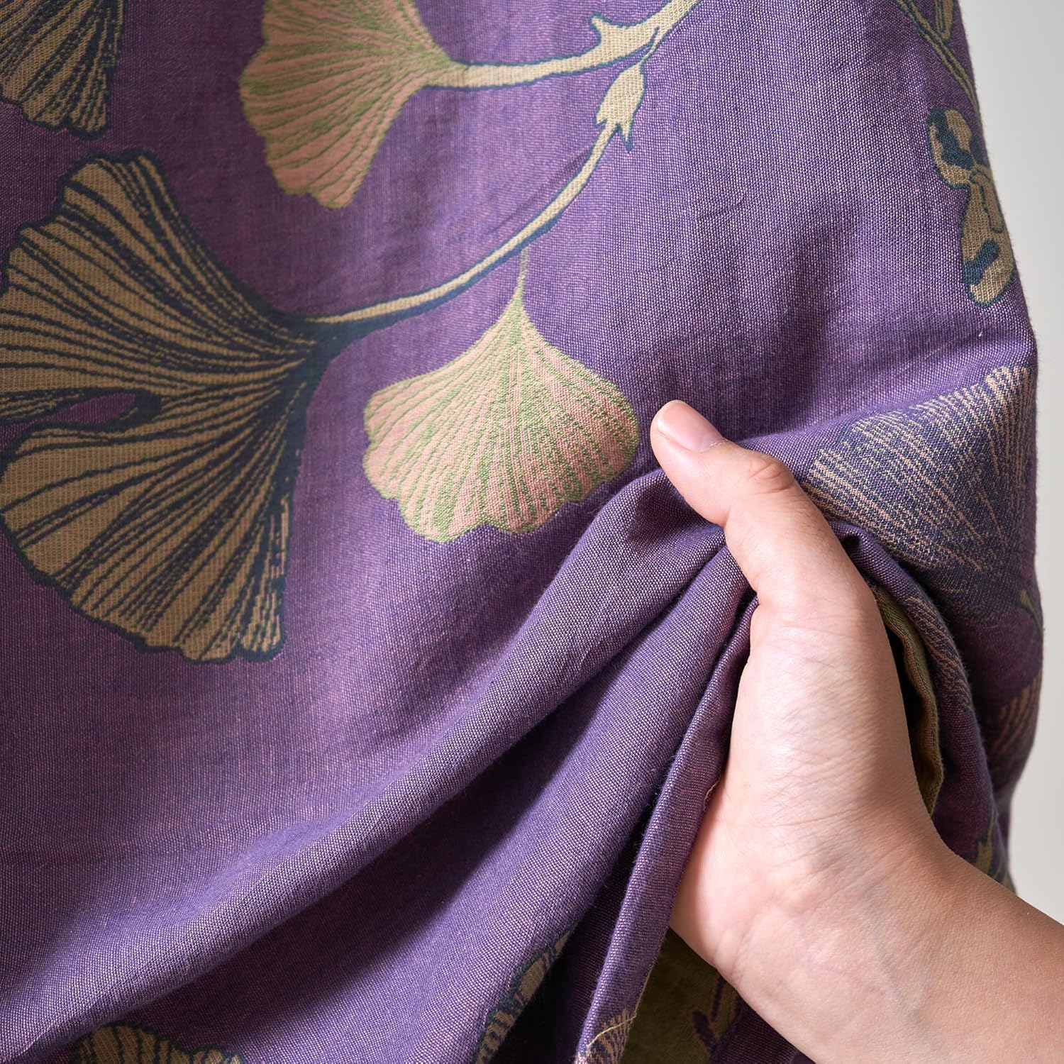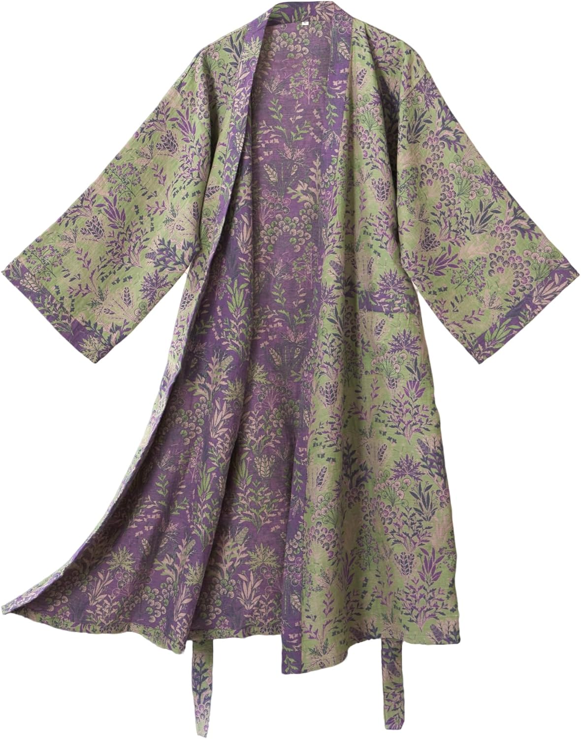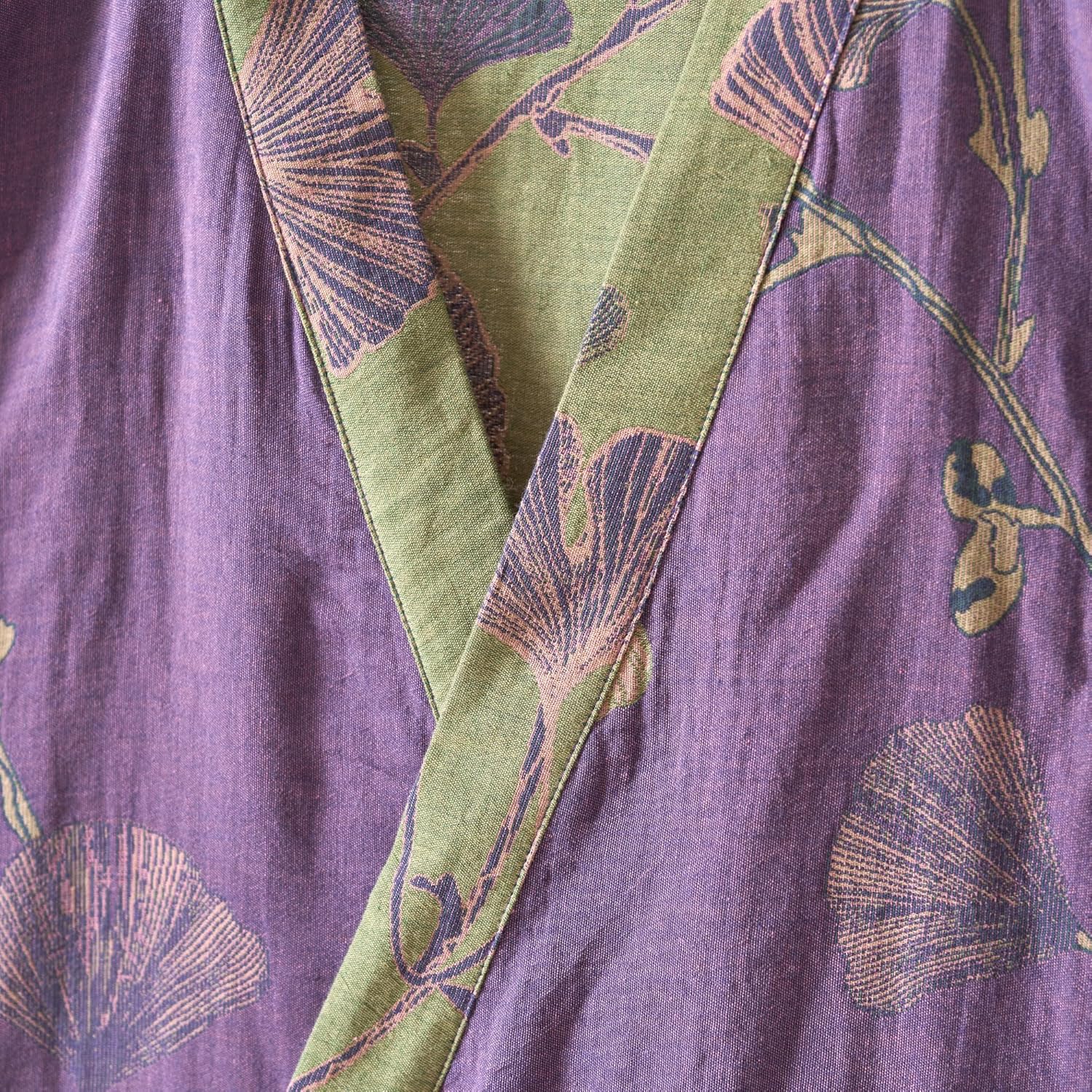 Purefair 100% Cotton Gauze Ginkgo Leaf Kimono Robe, Long Knit Loose Loungewear Bathrobe Nightgown Ladies Sleepwear for Women