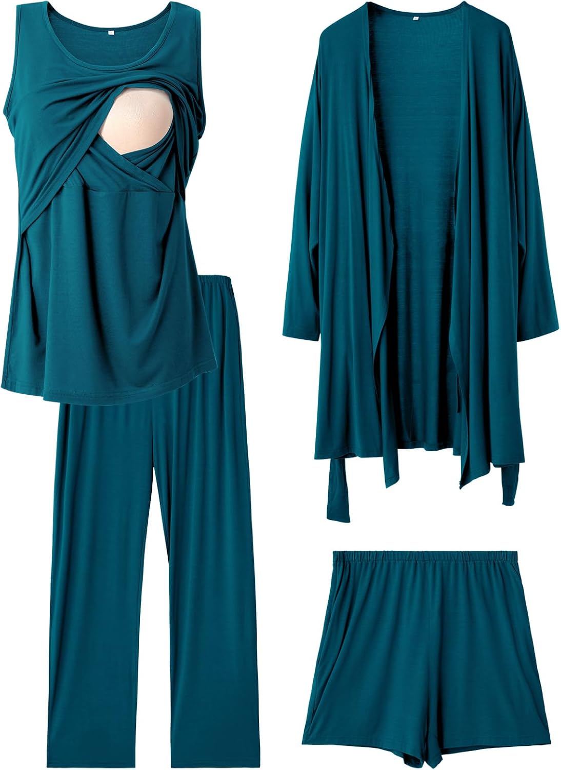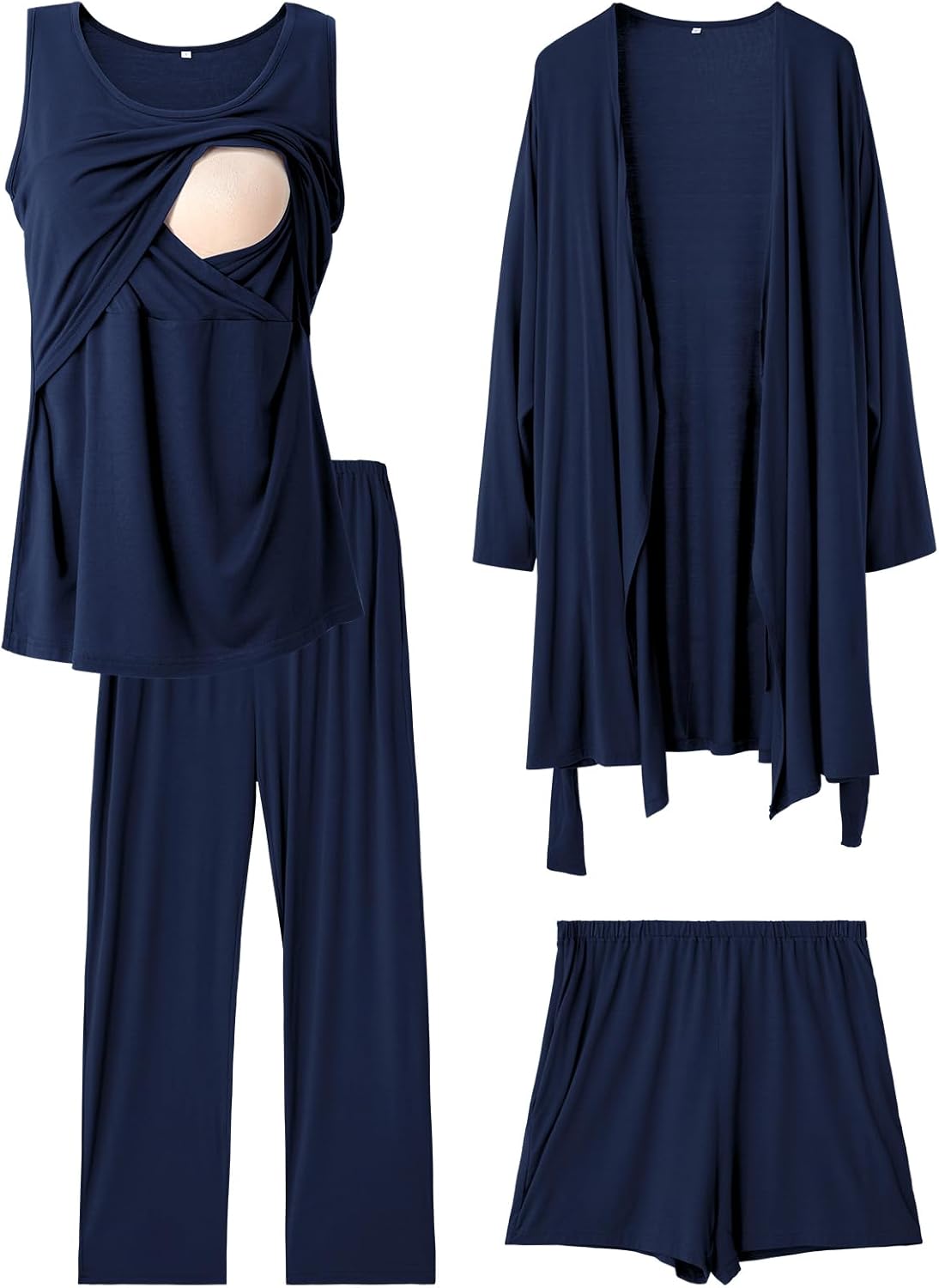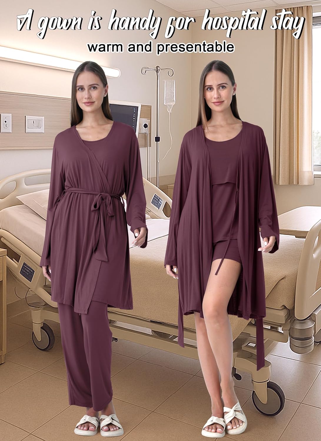 Rnxrbb 4 PCS Nursing Pajamas Gown Set Postpartum Pajama Nightgown Breastfeeding Pj for Hospital Labor Delivery