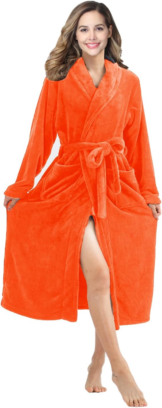 RONGTAI Womens Bathrobe Ladies Fleece Plush Warm Long Robes Fleece Nightgown Sleepwear