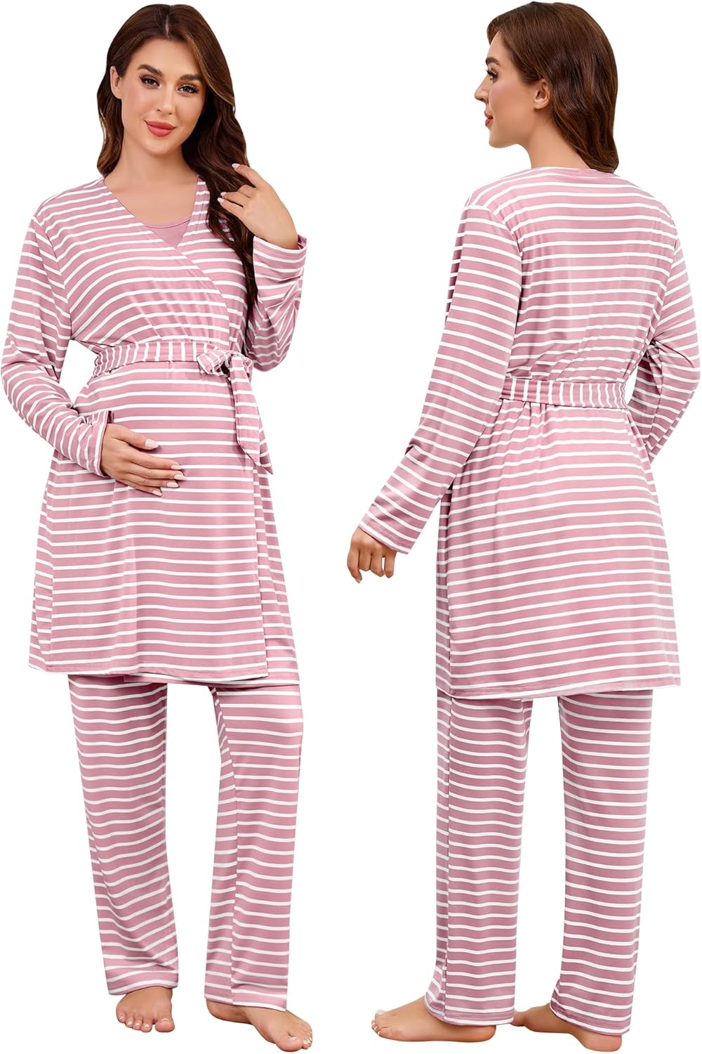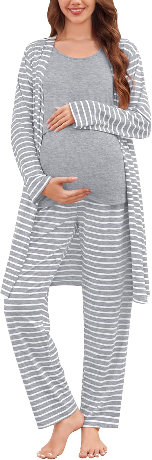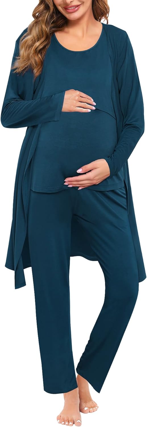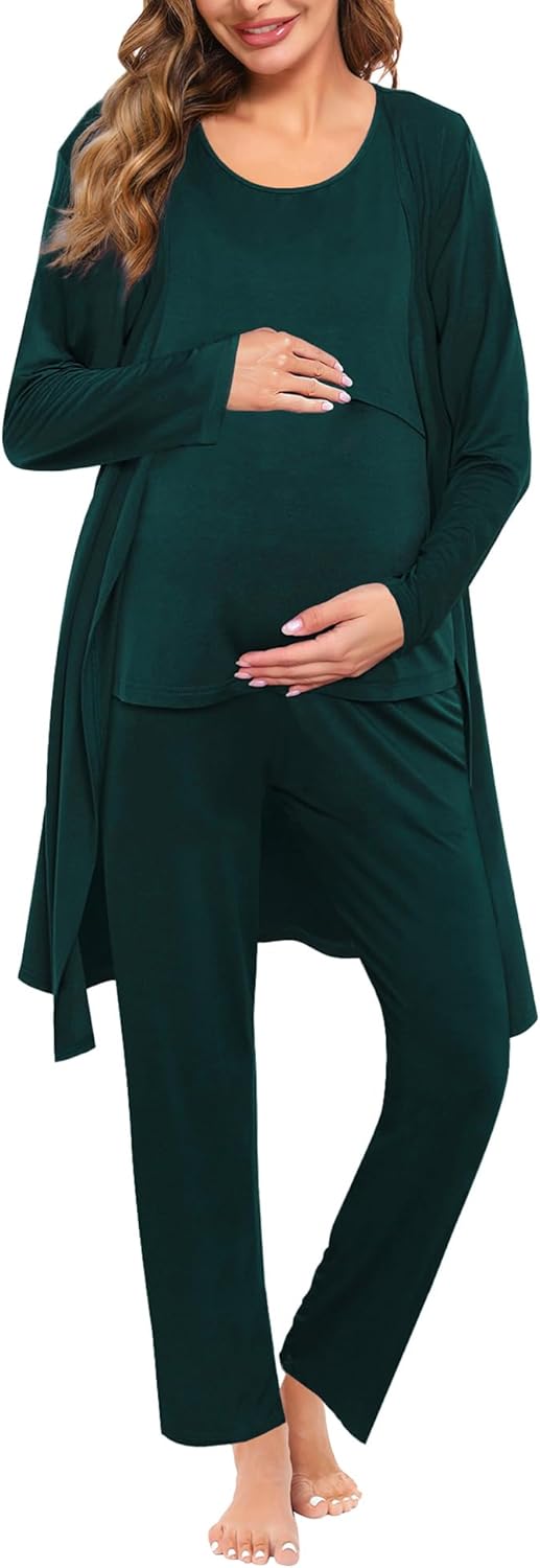 SWOMOG Maternity Nursing Robe Set 3 PCS Women Postpartum Pajamas Breastfeeding Labor Delivery Hospital Pregnancy Pjs