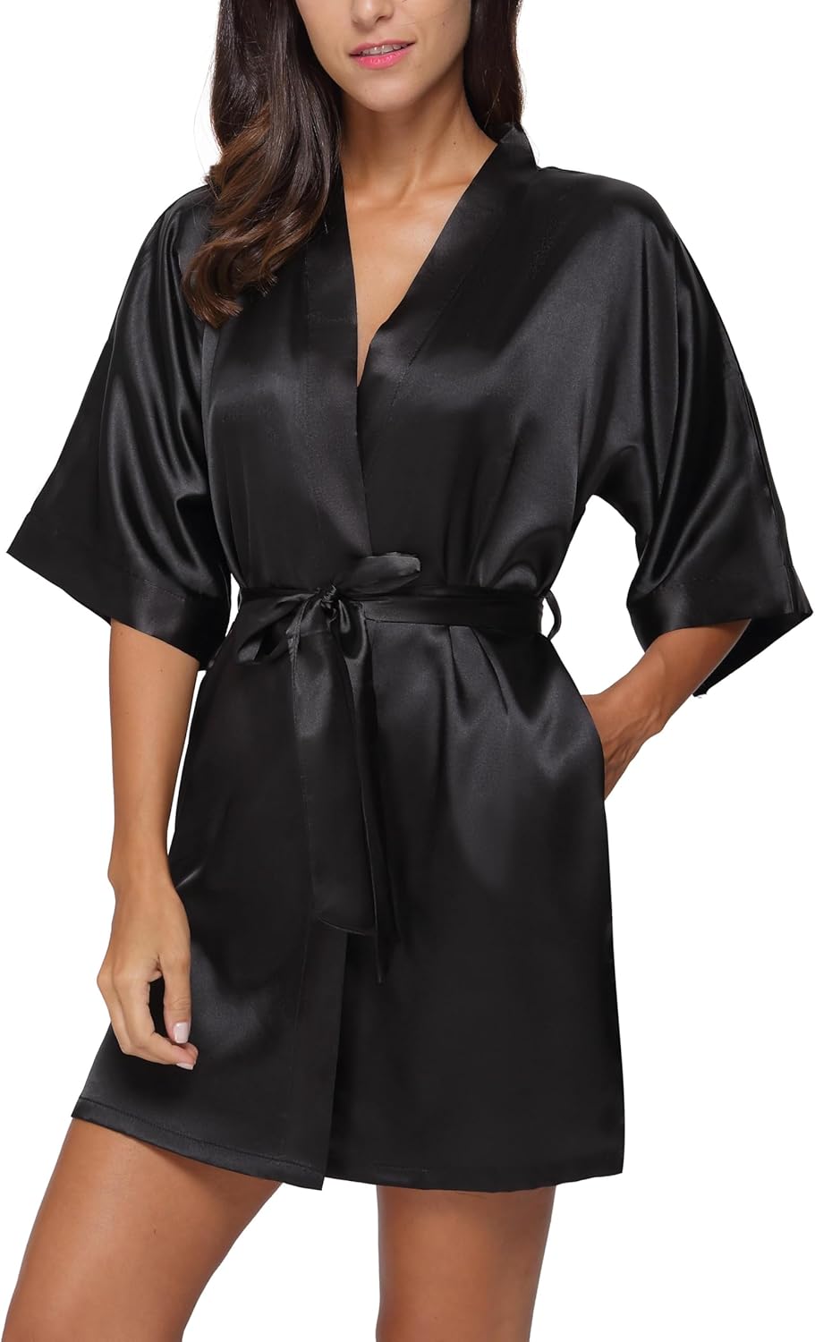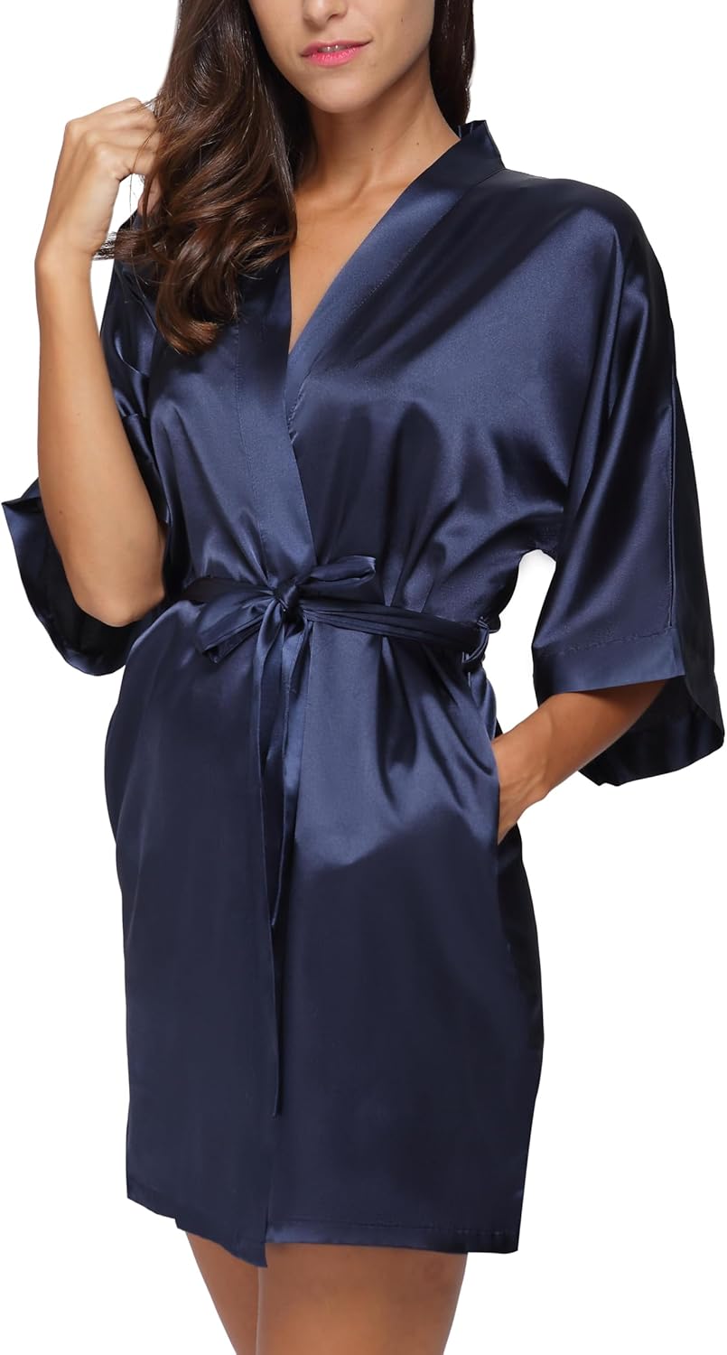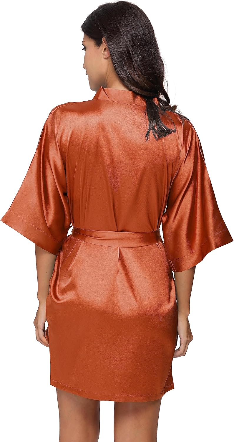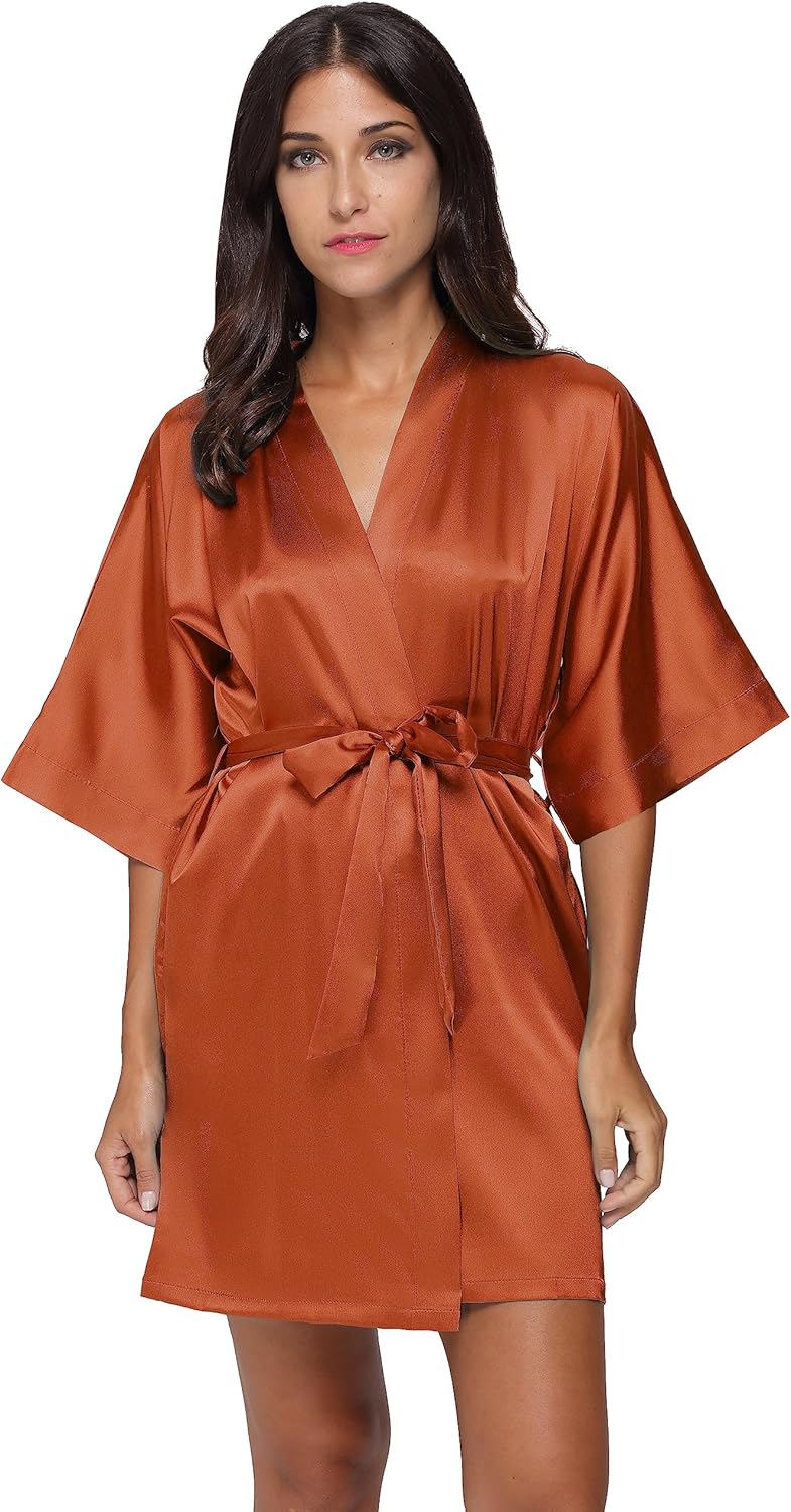 The Bund Women’s Silk Robe Short Satin Bathrobe Lightweight Wedding Robes for Bridal Party Bride Bridesmaids Loungewear