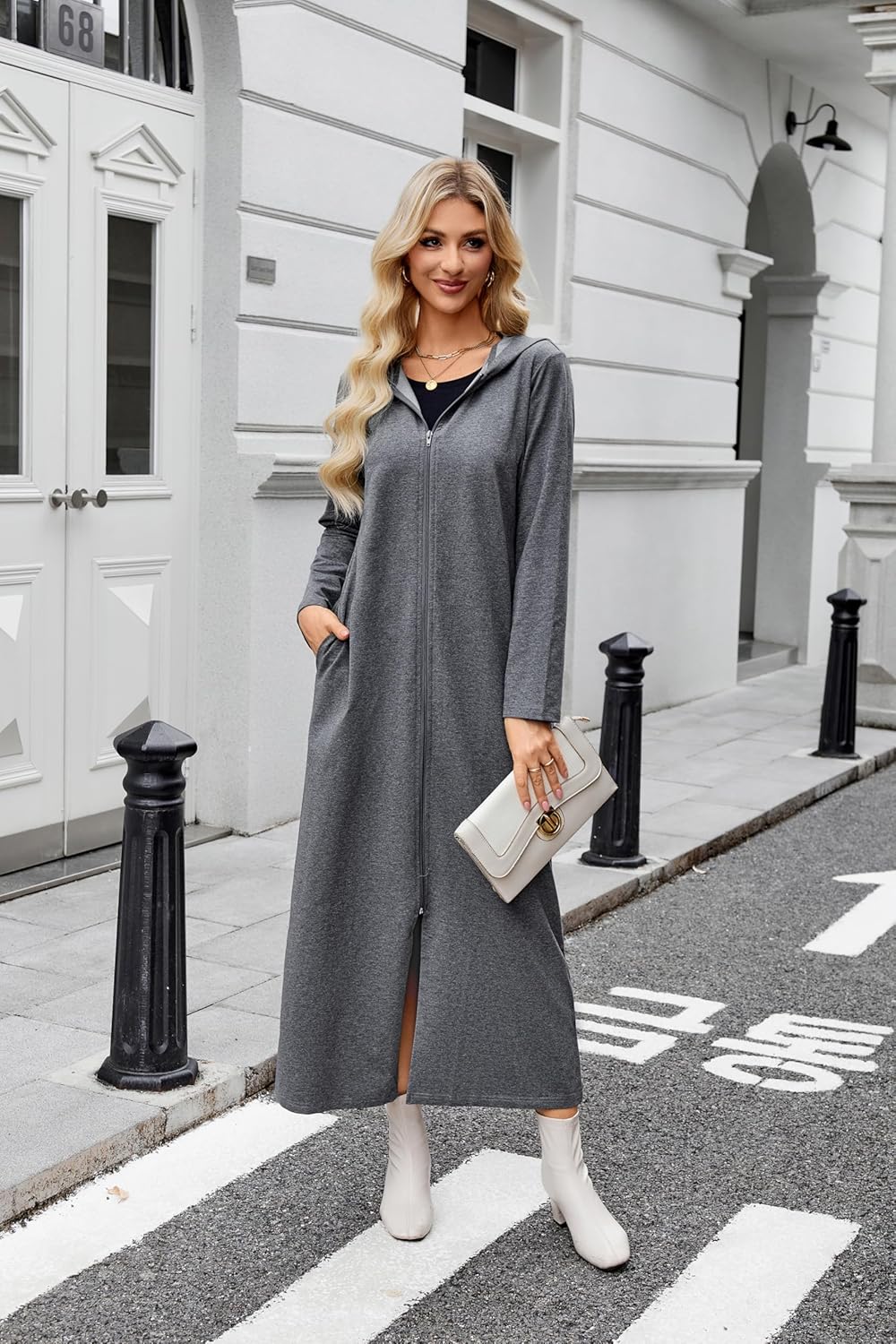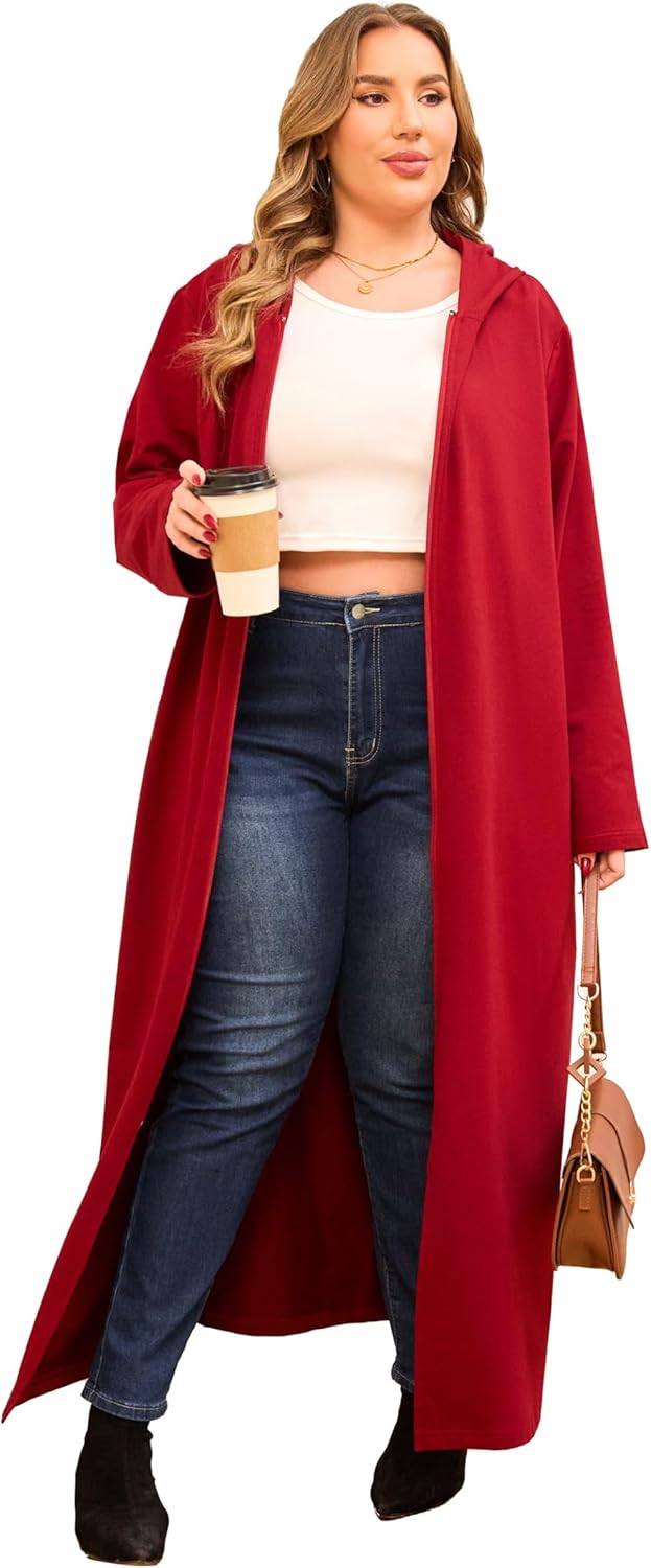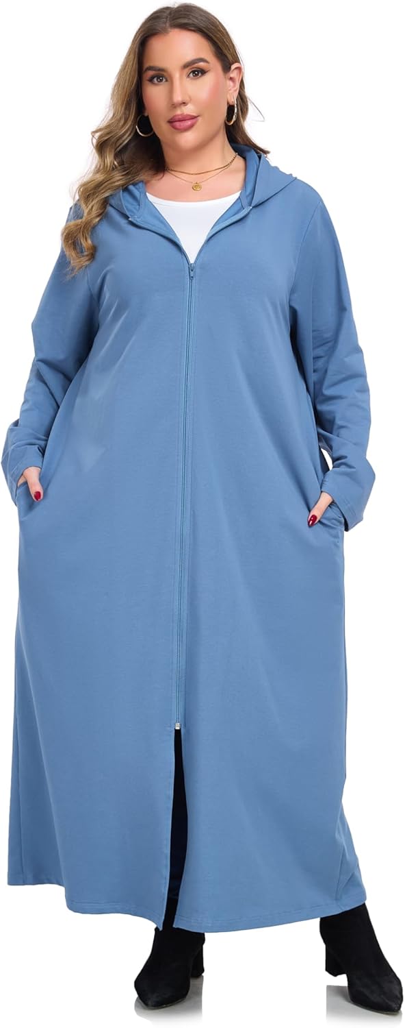 VintageClothing Women Hooded Zipper Robe Plus Size Zip Up Sweatshirt Robe Long Zipper Front Housecoat with Pockets S-4X