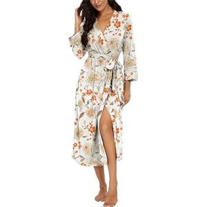 VINTATRE Women Kimono Robes Long Knit Bathrobe Lightweight Soft Knit Sleepwear V-neck Casual Ladies Loungewear