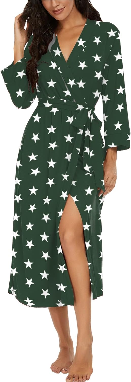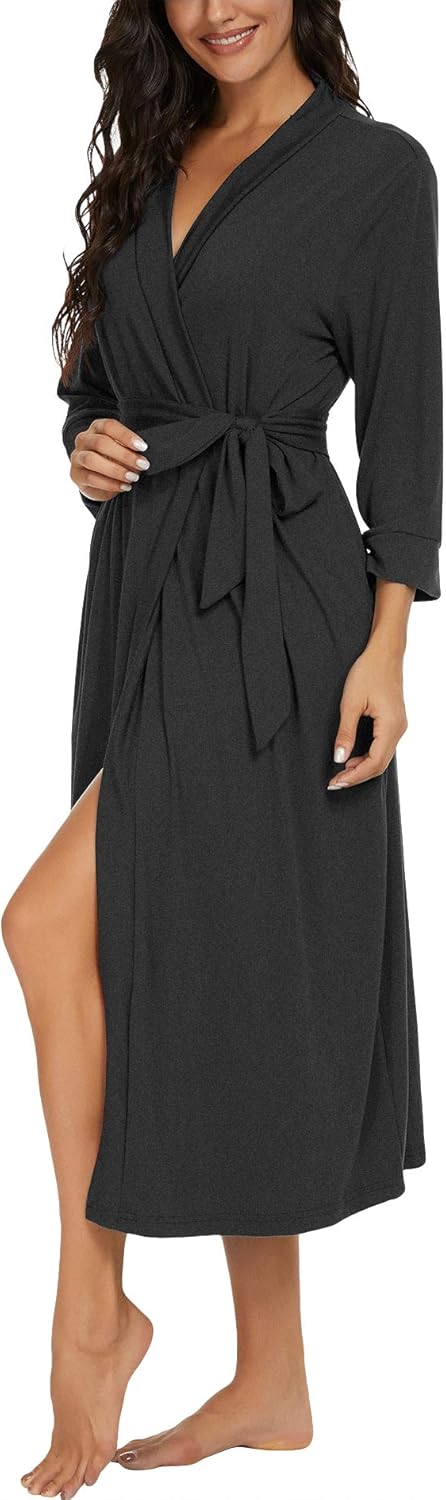 VINTATRE Women Kimono Robes Long Knit Bathrobe Lightweight Soft Knit Sleepwear V-neck Casual Ladies Loungewear